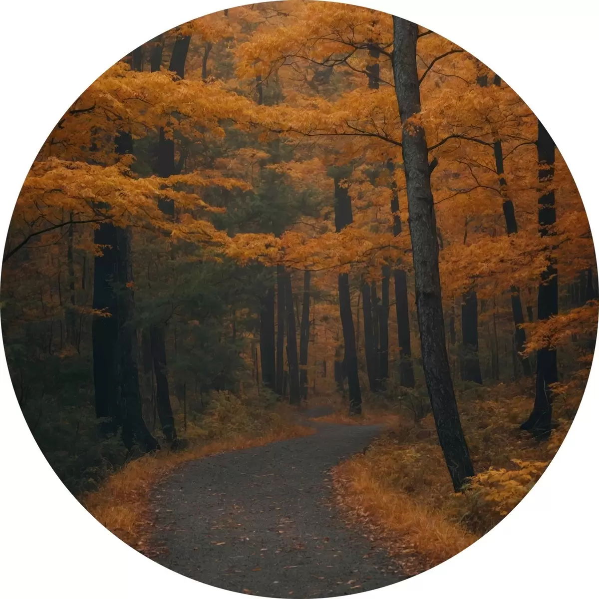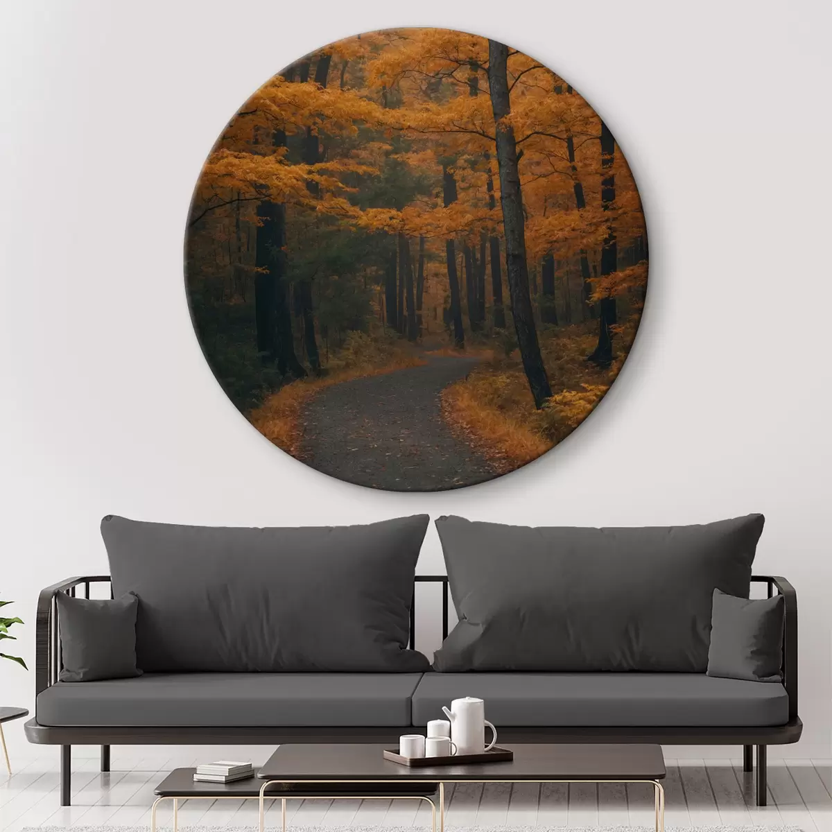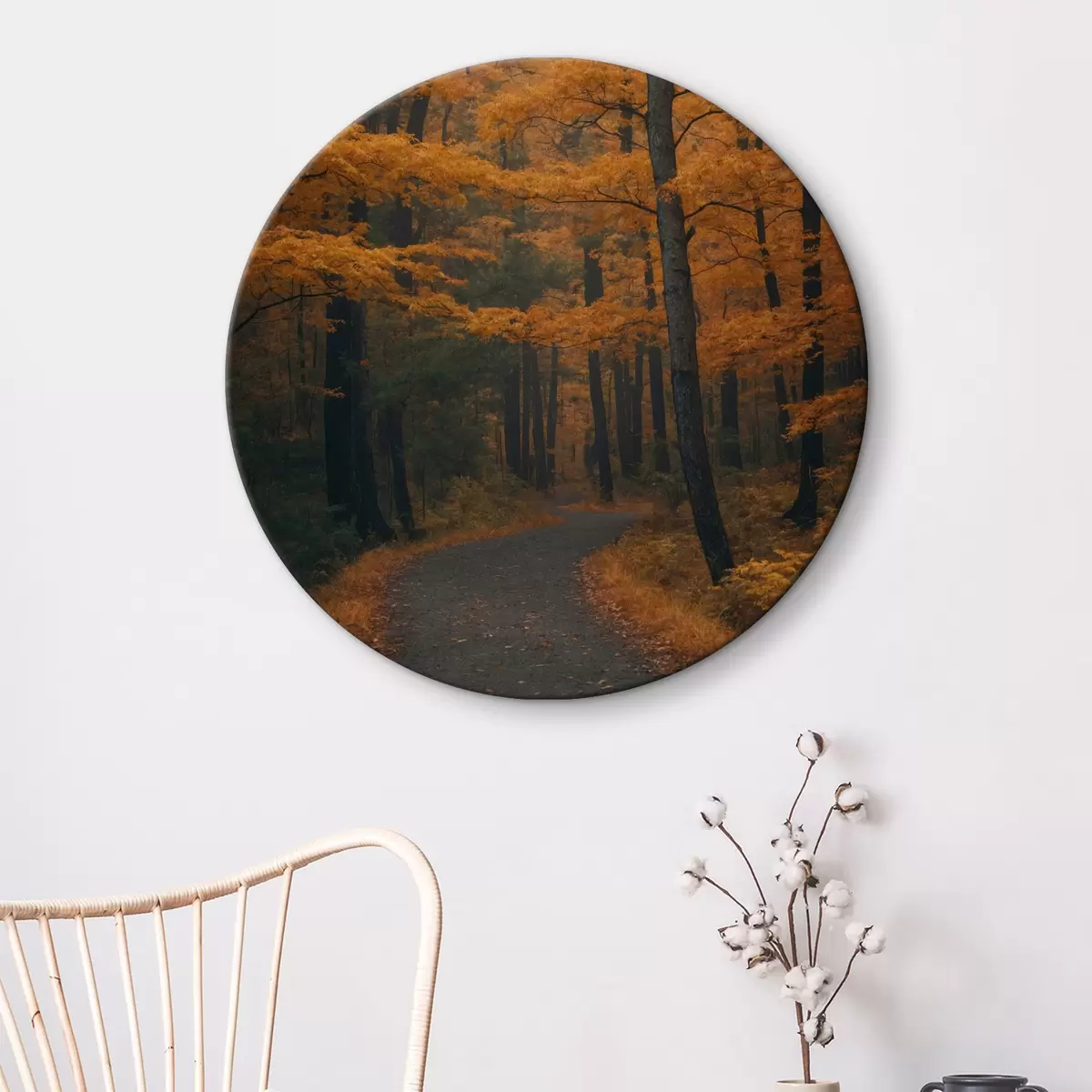 Quadri rotondi Sentiero nel bosco di pioppi r40471