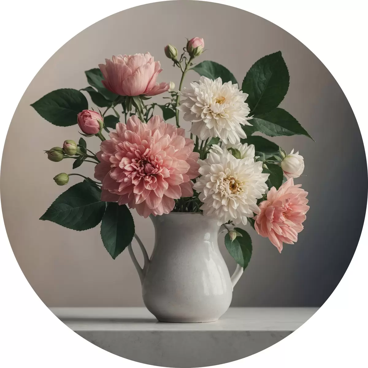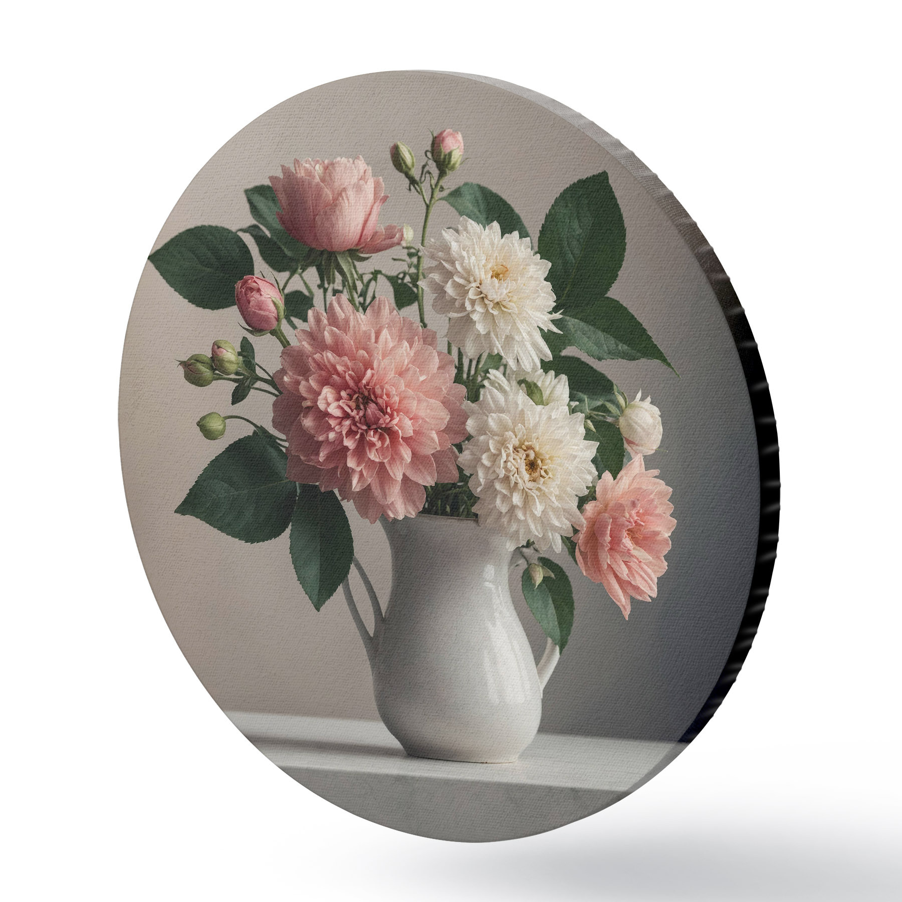 Quadri rotondi Fiori in un vaso bianco sul tavolo r40472