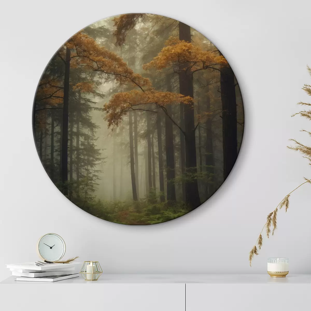 Quadri rotondi Nebbia nella foresta autunnale r40474