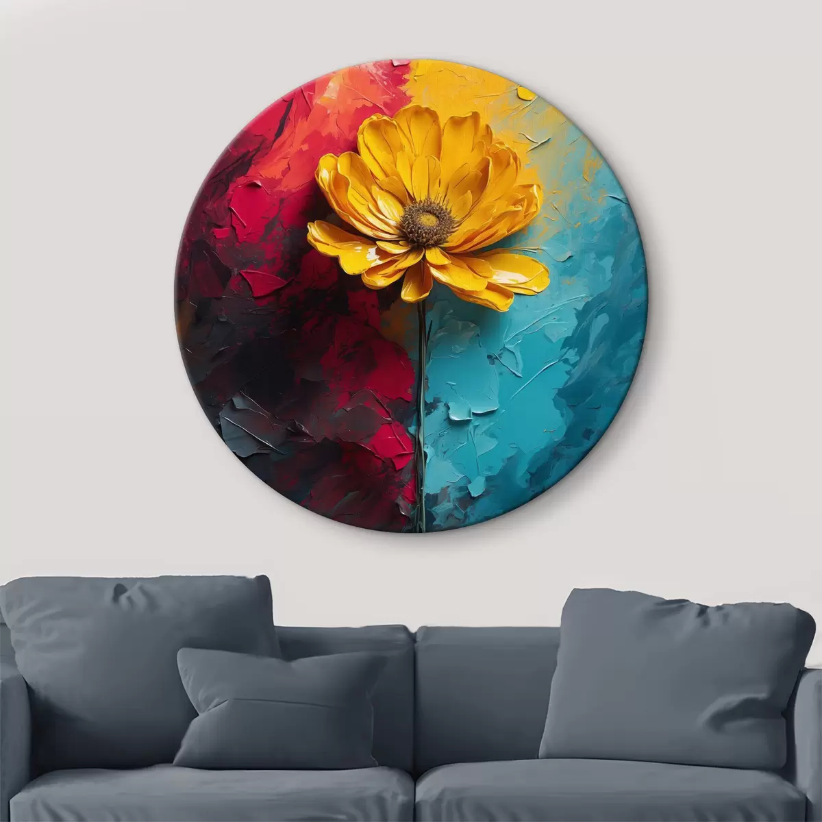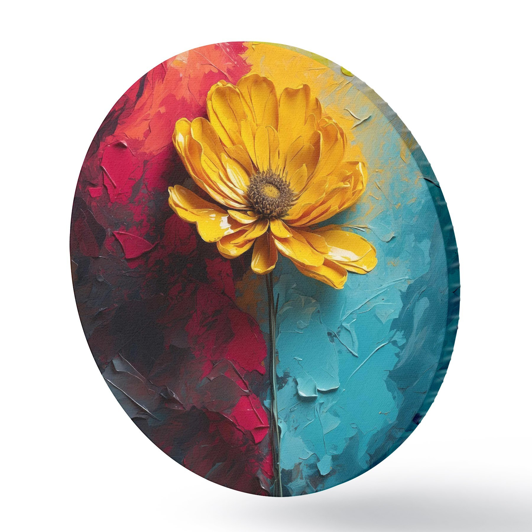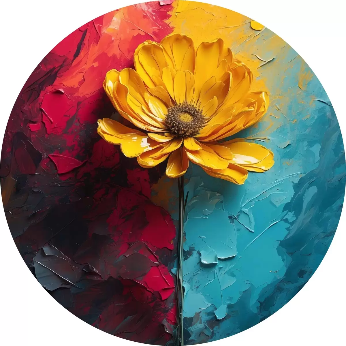 Quadri rotondi Fiore giallo su sfondo acrilico astratto r40483