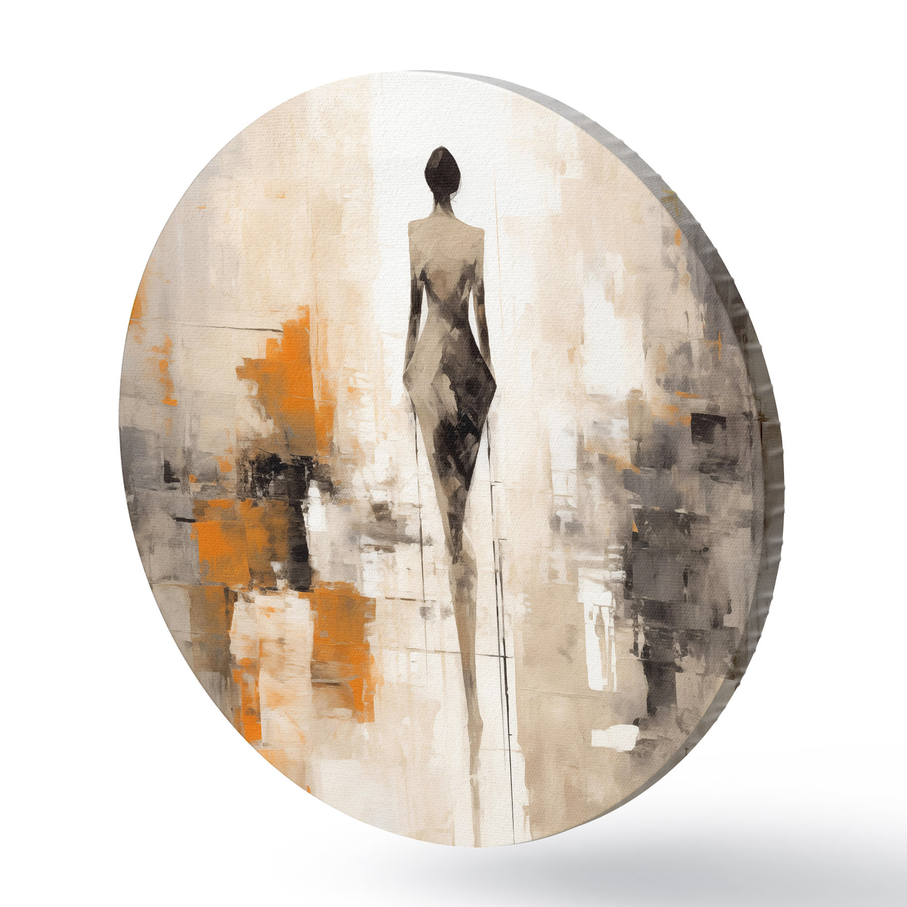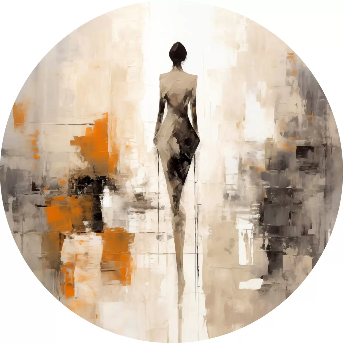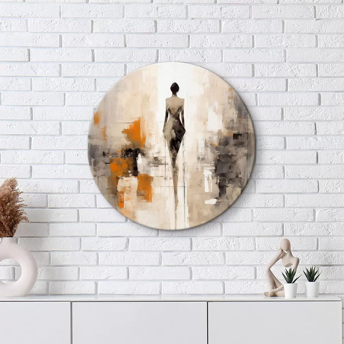 Quadri rotondi Silhouette astratta di una donna, imitazione di abrasioni e pennellate r40485