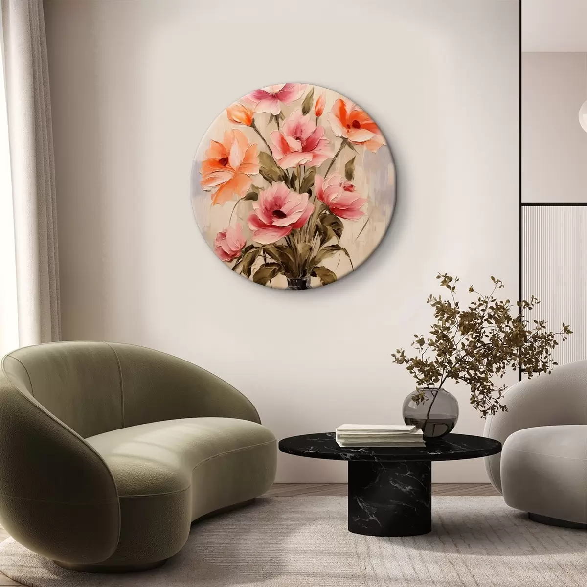 Quadri rotondi Un bouquet di papaveri in vaso, rosso, rosa, arancione, grigio e beige r40499