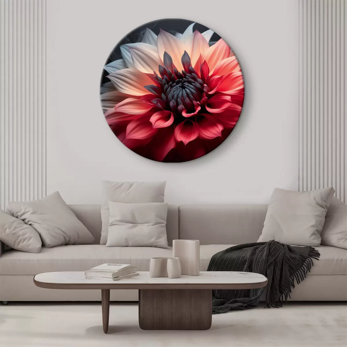 Quadri rotondi Grande fiore rosso su sfondo scuro r40506