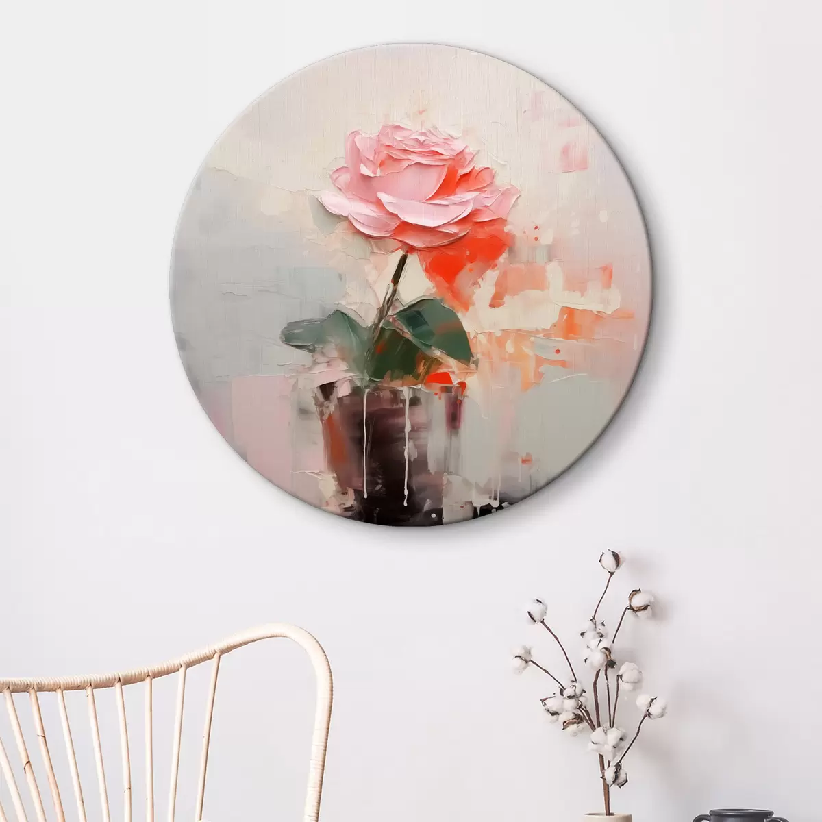 Quadri rotondi Rosa astratta in un vaso, grigio, rosa, rosso r40515