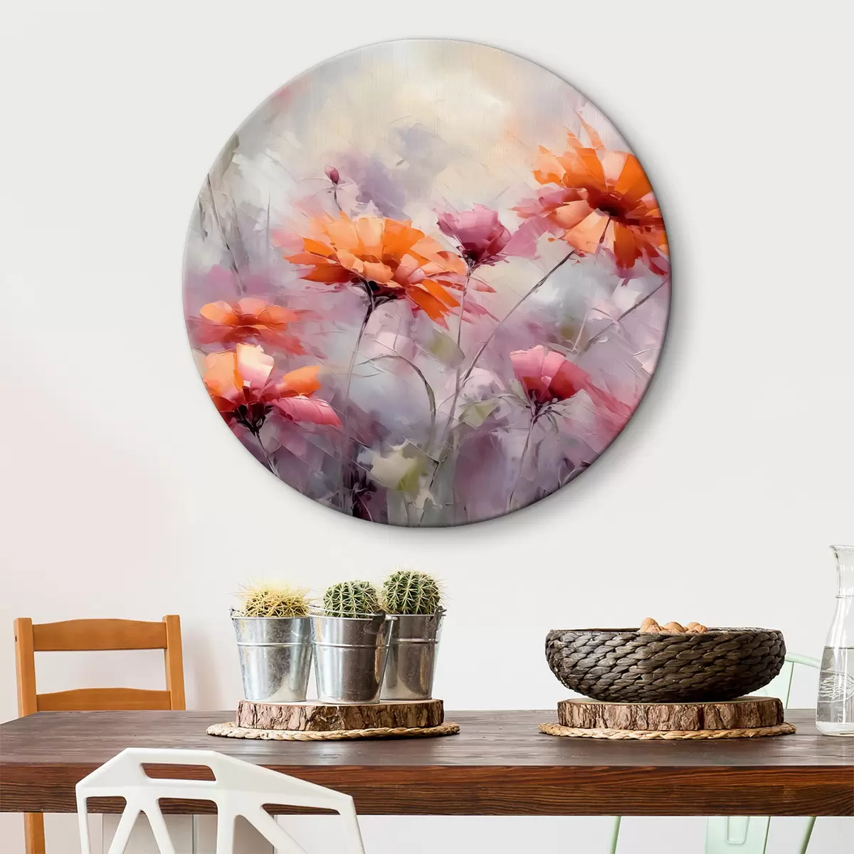 Quadri rotondi Fiori astratti, imitazione di pennellate, rosso, grigio, viola, arancione r40528