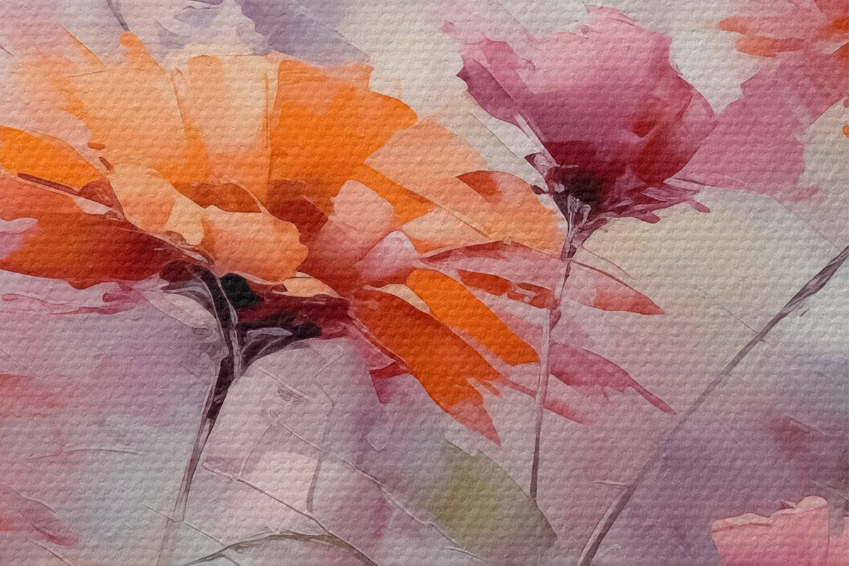 Immagine Fiori astratti, imitazione di pennellate, rosso, grigio, viola, arancione Nr r40528