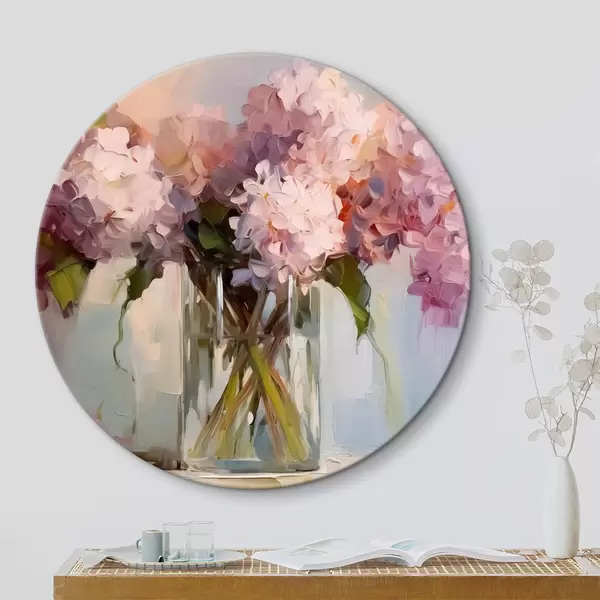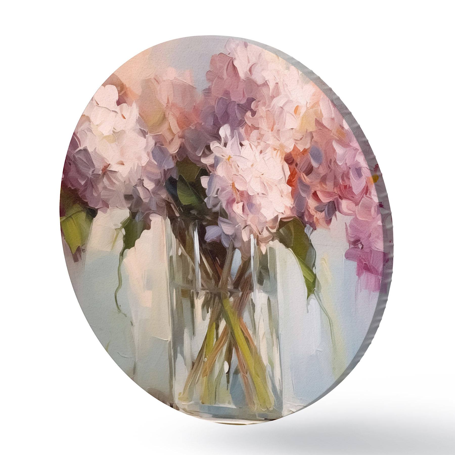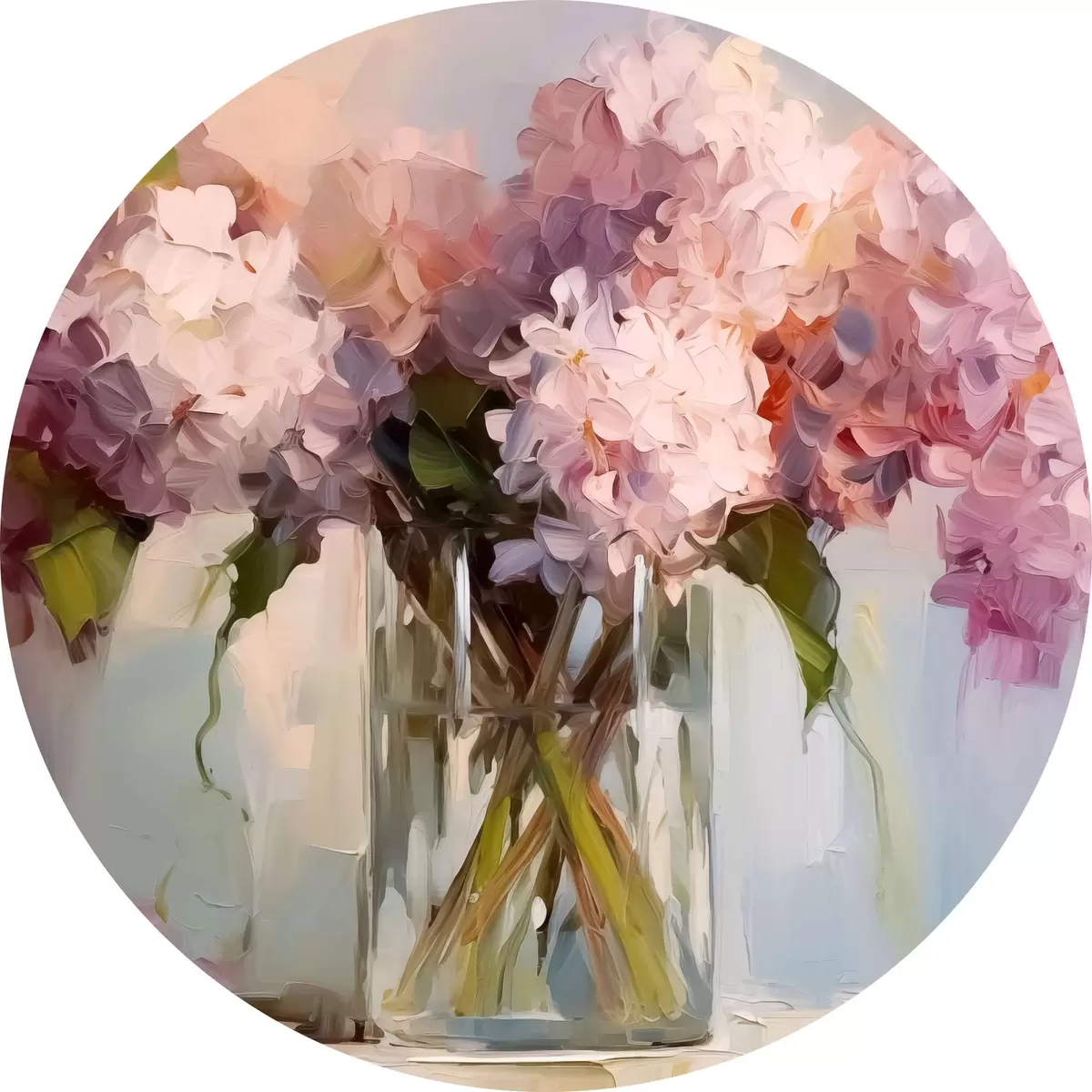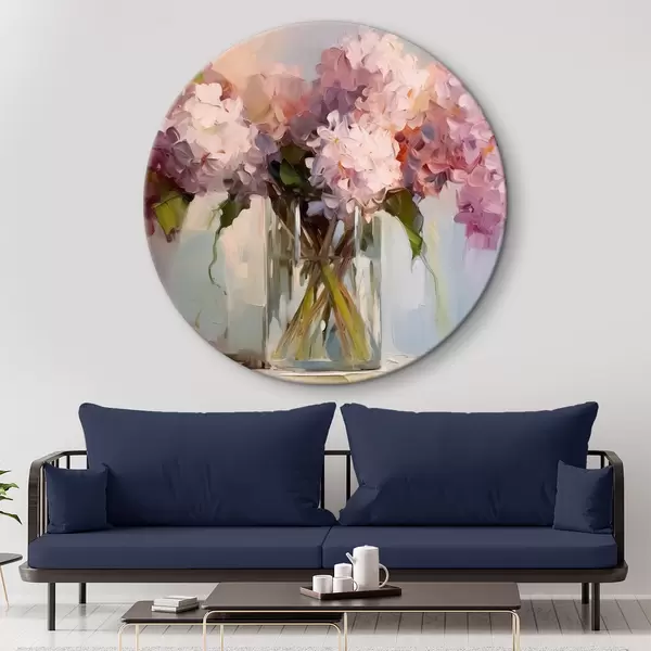 Quadri rotondi Un bouquet di giacinti in un grande vaso di vetro, colori pastello r40529