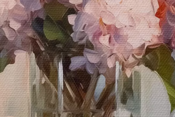 Immagine Un bouquet di giacinti in un grande vaso di vetro, colori pastello Nr r40529