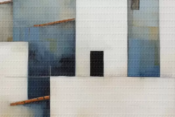 Immagine Case astratte stilizzate bianche, colori rosso, arancione, giallo, blu Nr r40531
