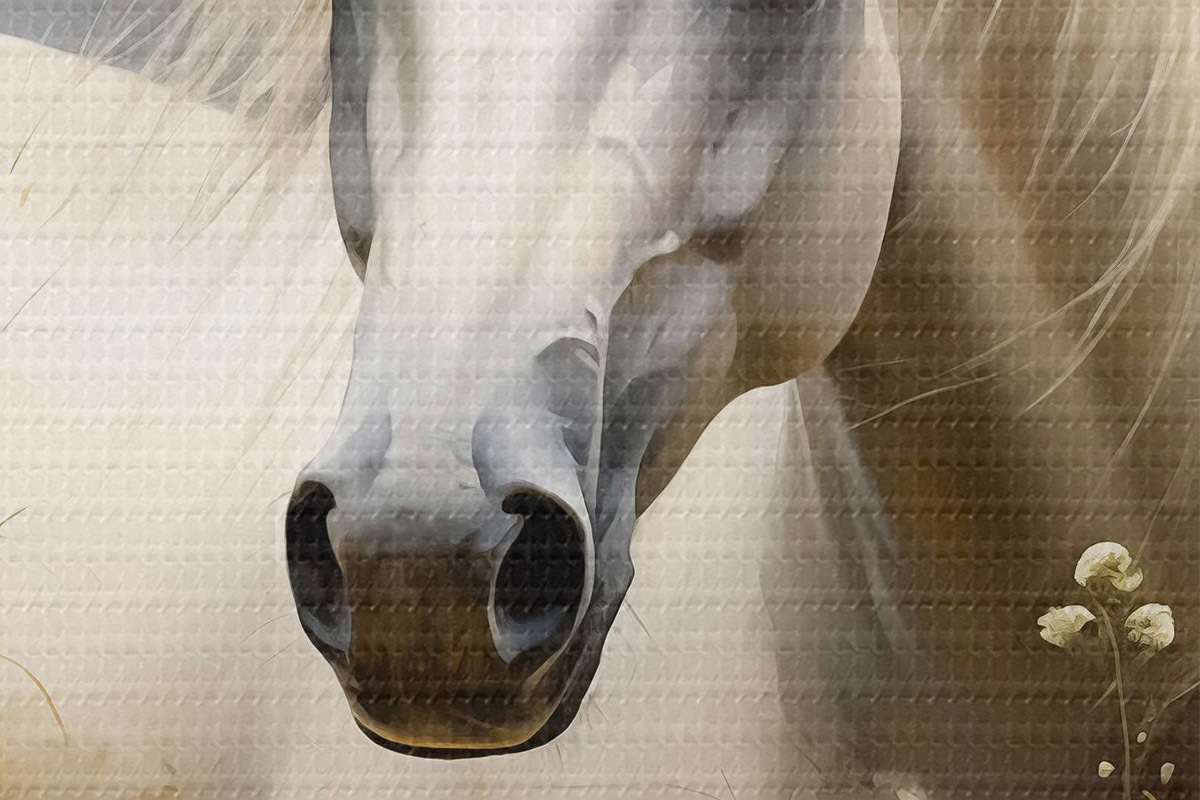 Immagine Cavallo bianco nell'erba tra le margherite Nr r40533