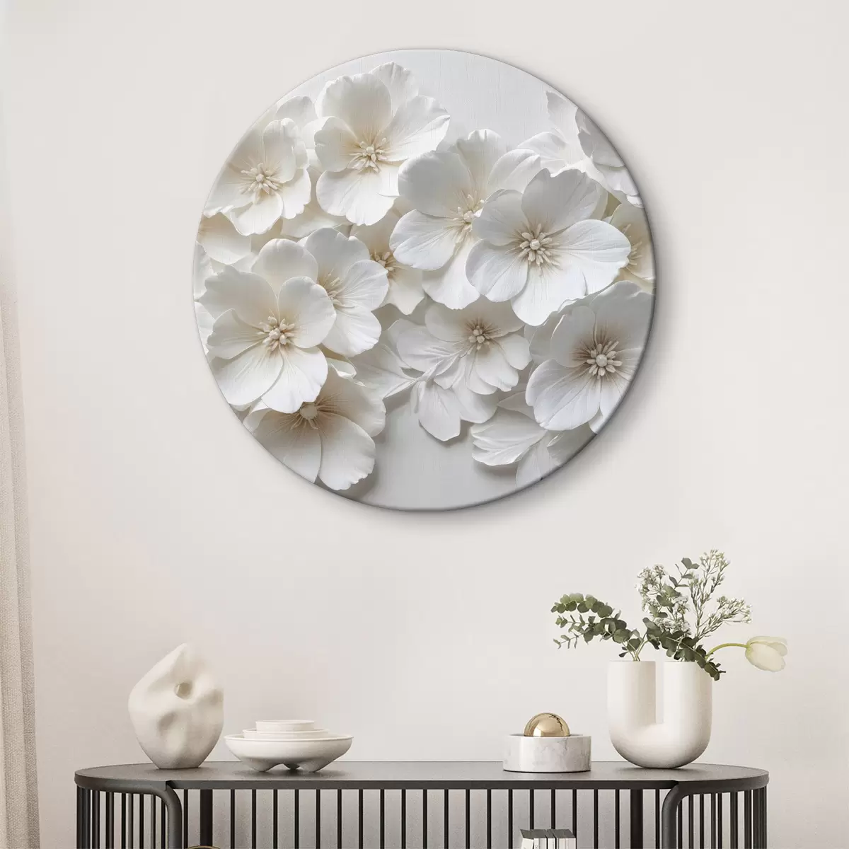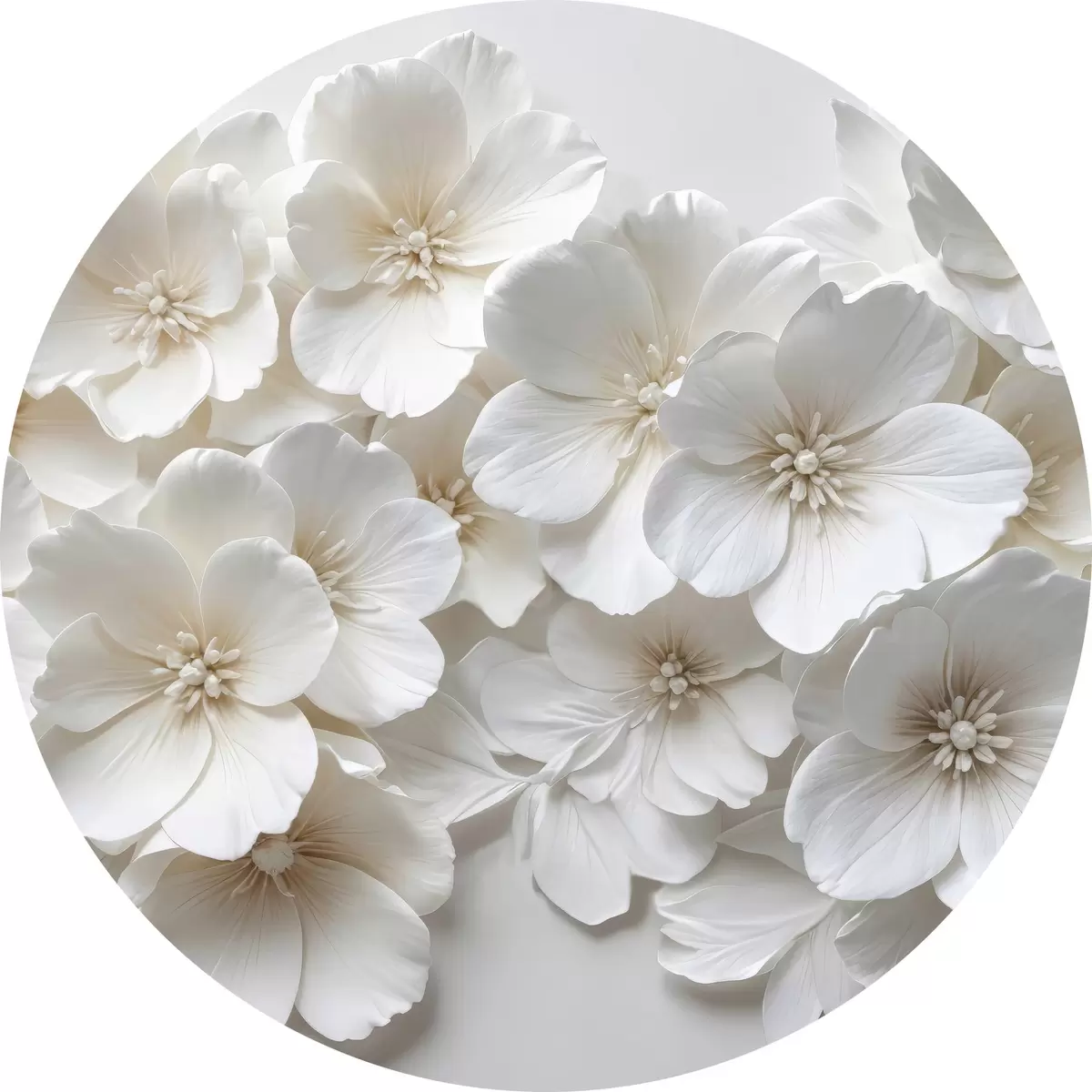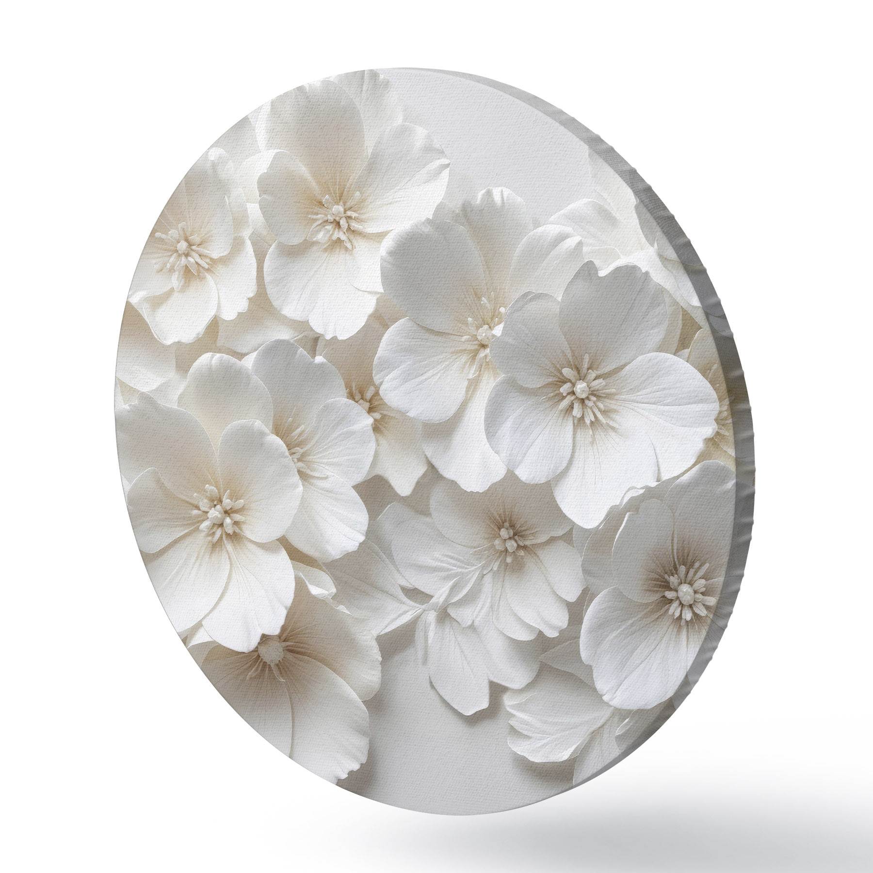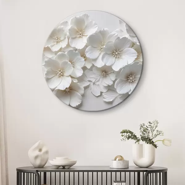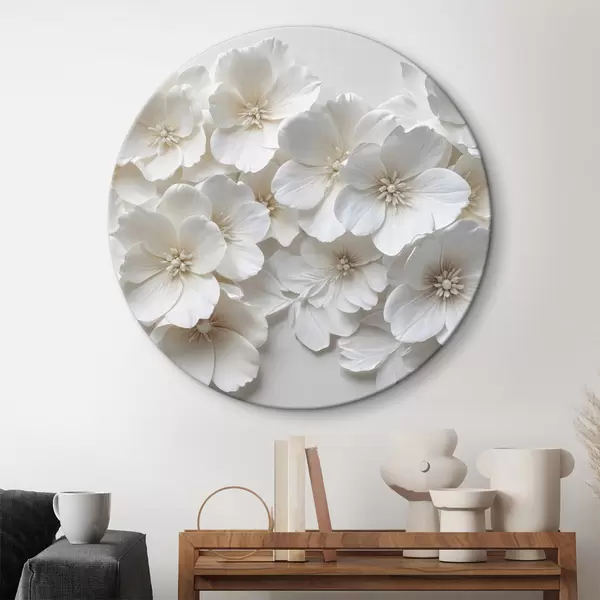 Quadri rotondi Fiori bianchi con petali delicati disposti in un bellissimo motivo floreale su uno sfondo chiaro r40548
