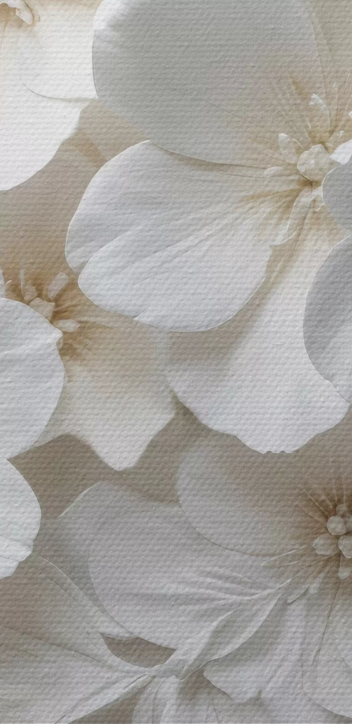 Immagine Fiori bianchi con petali delicati disposti in un bellissimo motivo floreale su uno sfondo chiaro Nr r40548