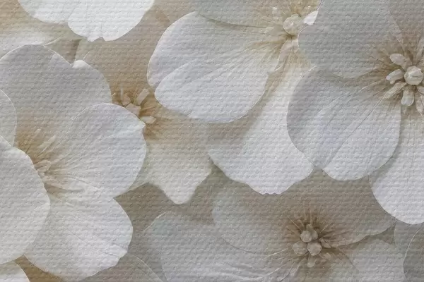 Immagine Fiori bianchi con petali delicati disposti in un bellissimo motivo floreale su uno sfondo chiaro Nr r40548