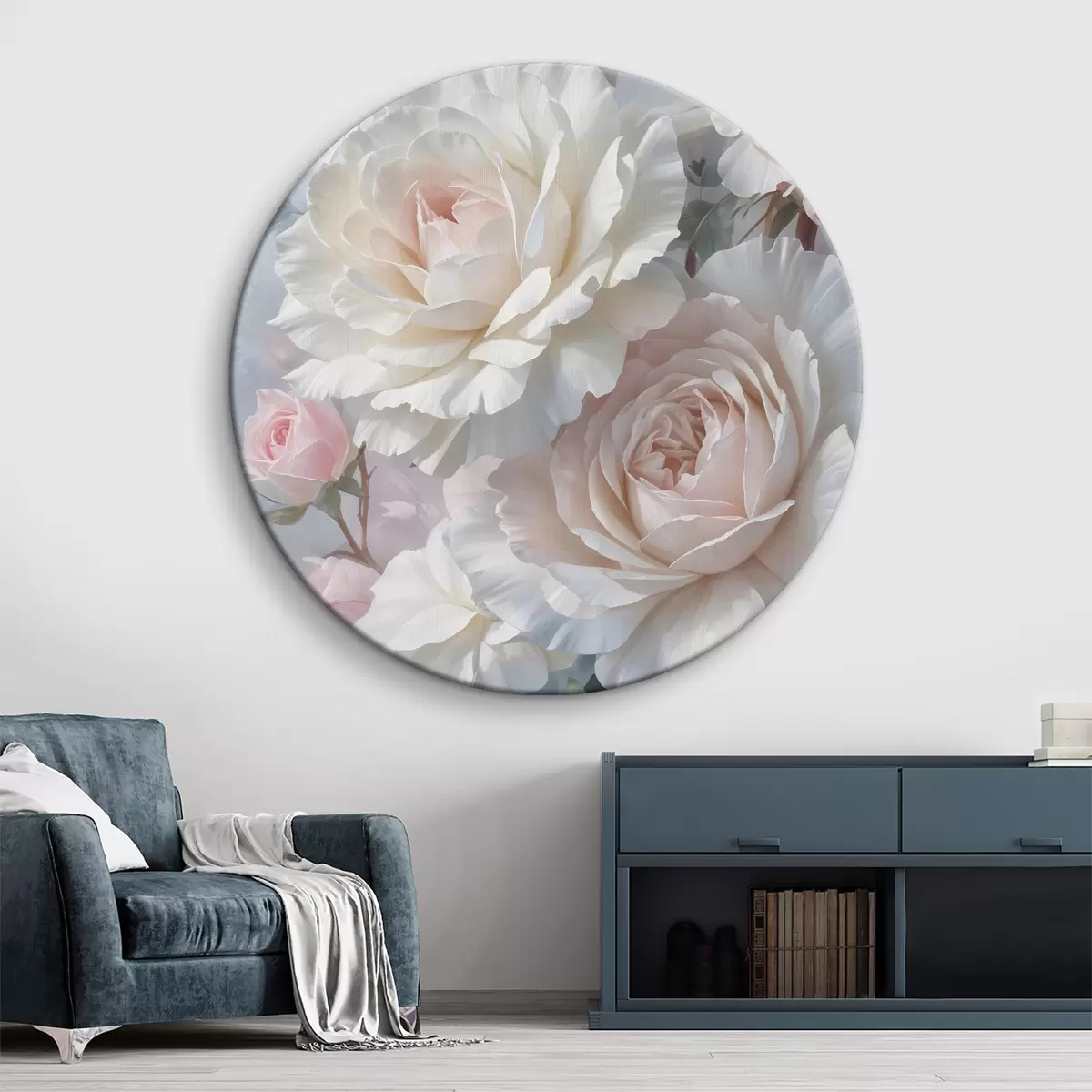 Quadri rotondi Rose bianche e rosa morbide e delicate con sfondo sfocato r40562
