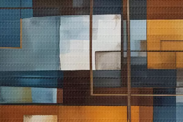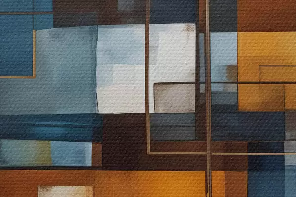 Immagine Forme geometriche astratte nei toni del blu, dell'arancio e del marrone creano una composizione moderna e minimalista Nr r40563