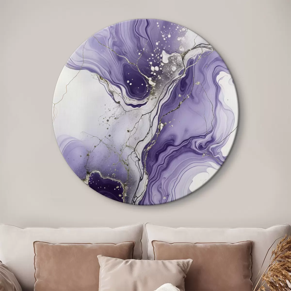 Quadri rotondi Composizione astratta di arte fluida stampata con inchiostri vorticosi viola, bianchi e grigi r40566