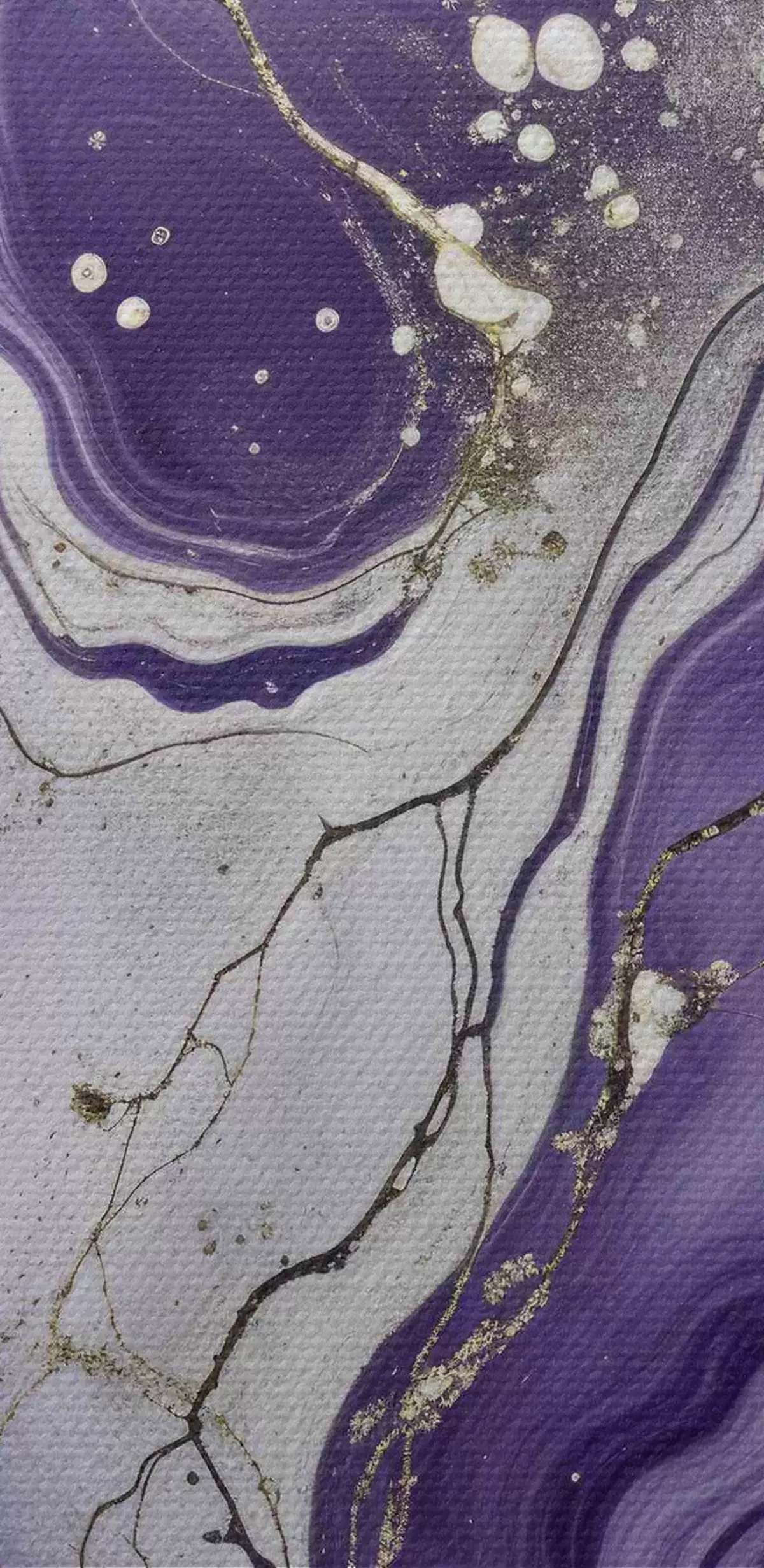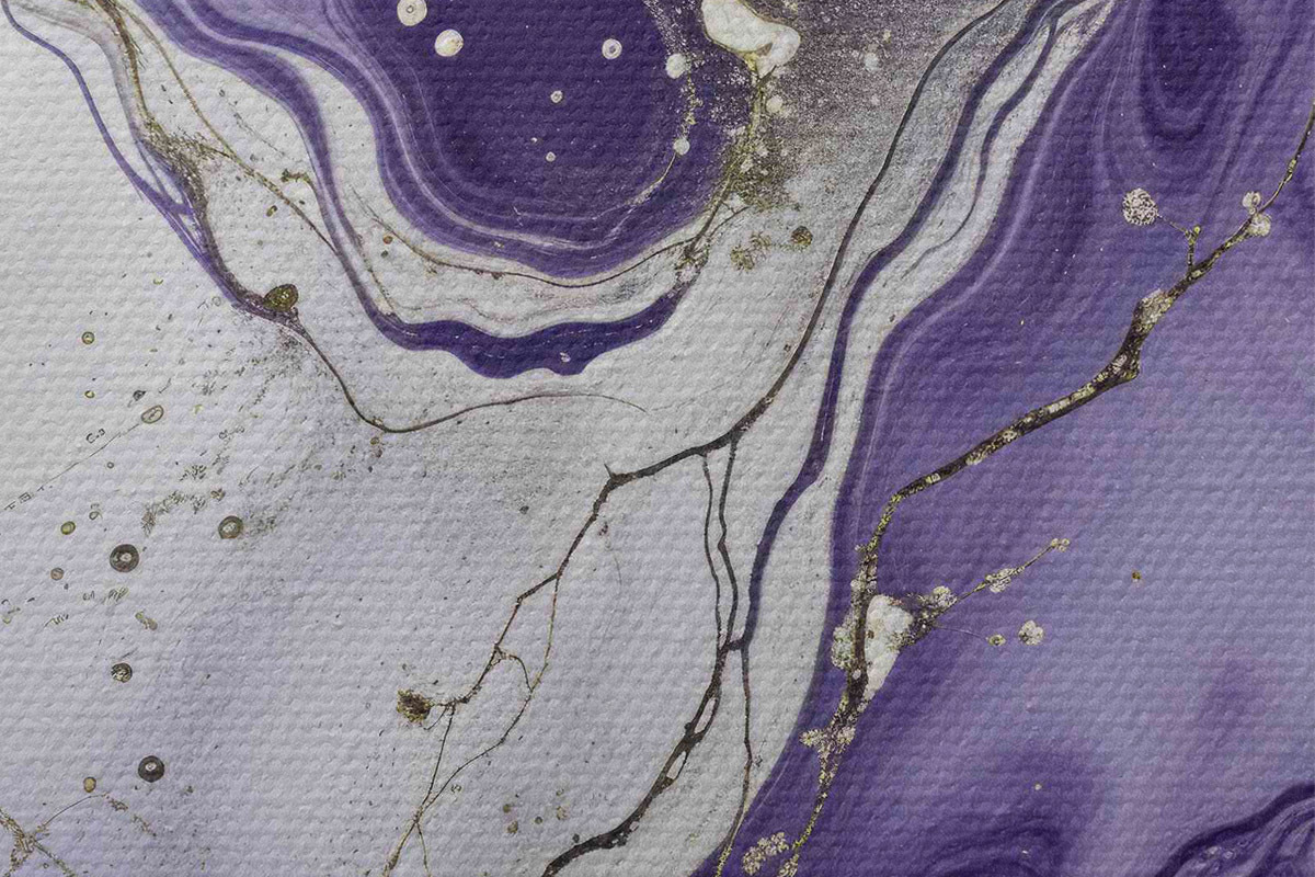 Immagine Composizione astratta di arte fluida stampata con inchiostri vorticosi viola, bianchi e grigi Nr r40566