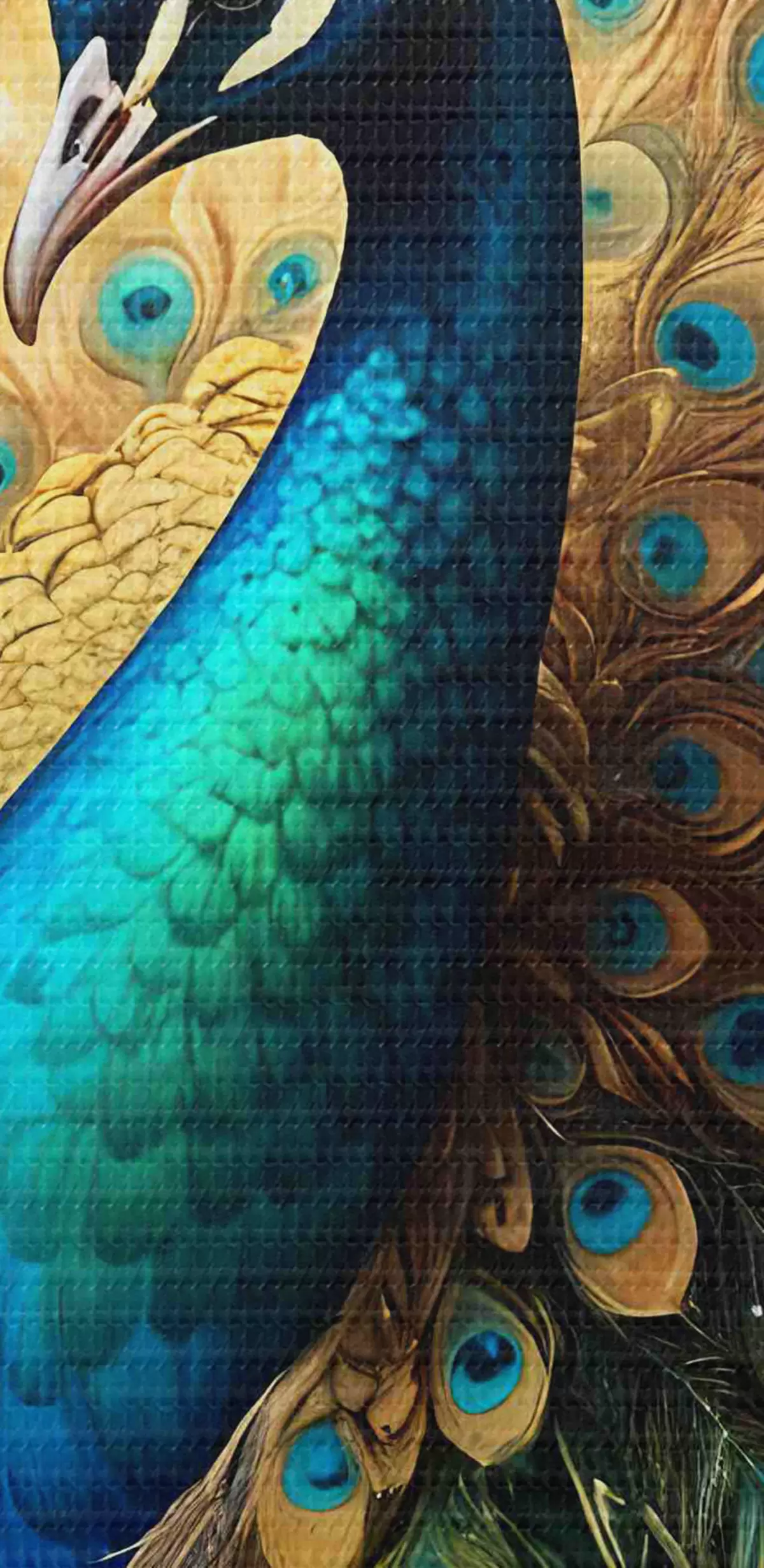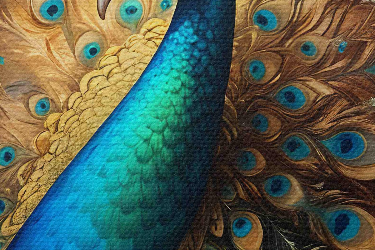 Immagine Un vivace pavone con le piume completamente esposte, che sfoggia uno splendido piumaggio blu e verde Nr r40571