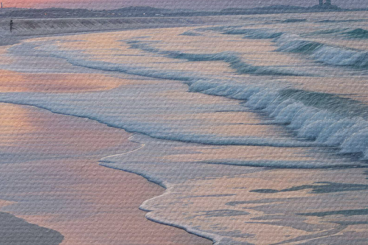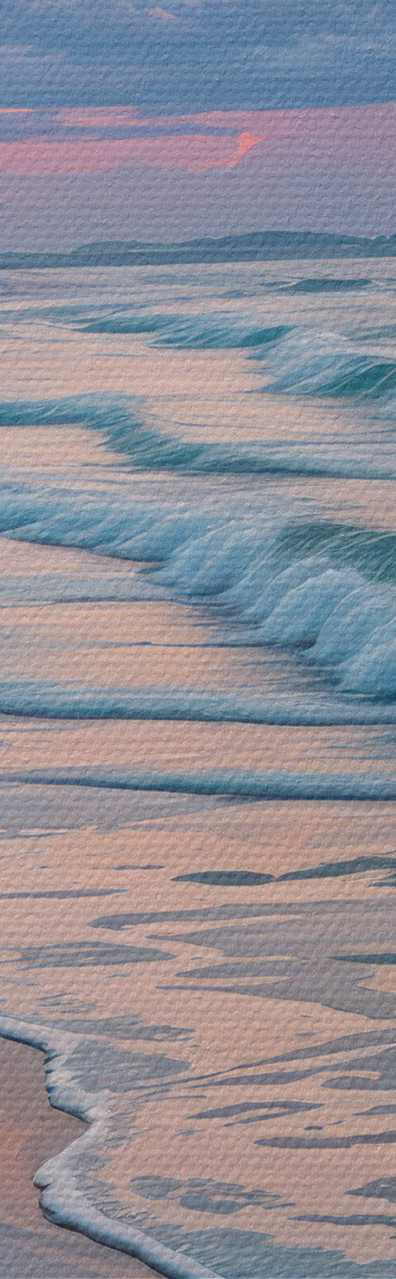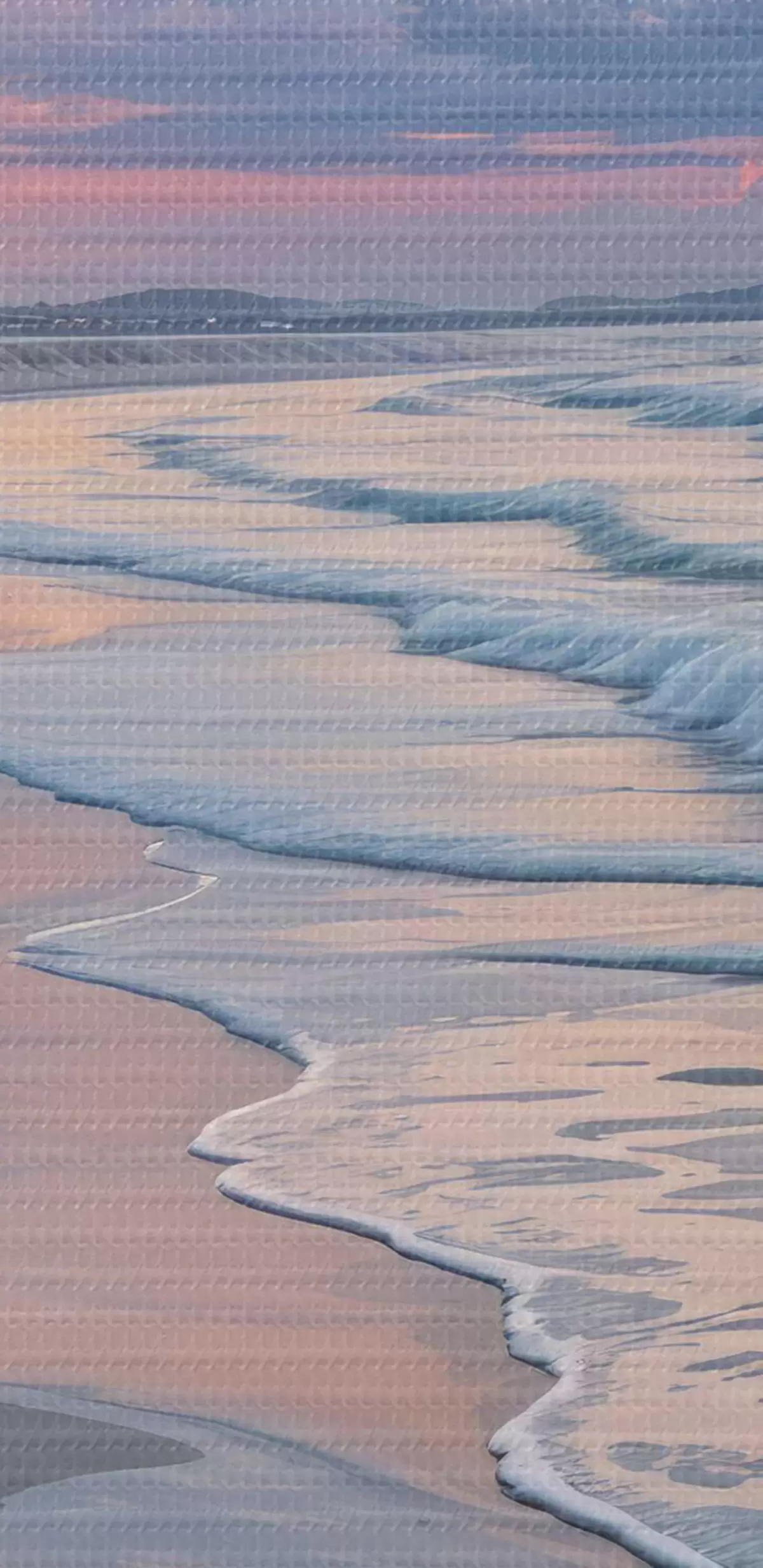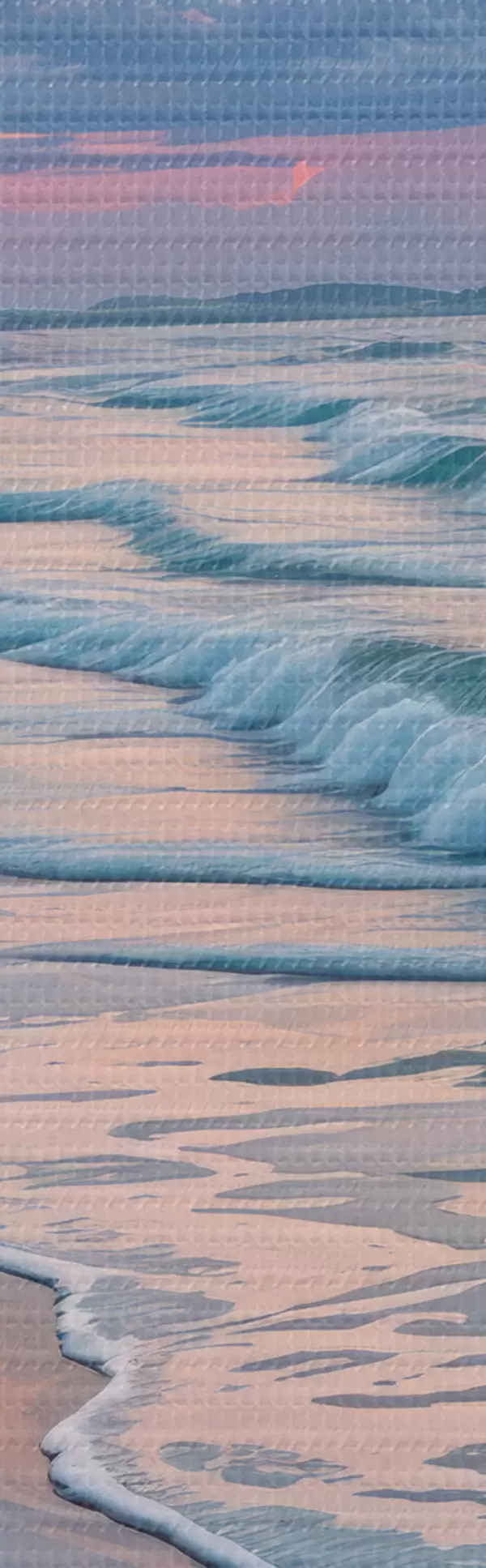 Immagine Una scena di tranquillità sulla spiaggia al tramonto, con le onde che lambiscono l'arenile Nr r40606