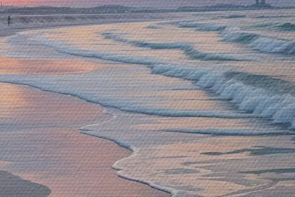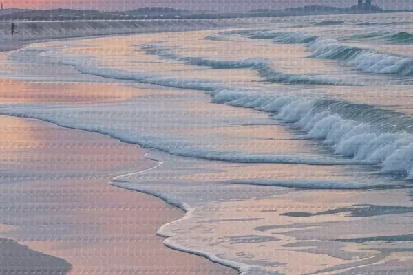 Immagine Una scena di tranquillità sulla spiaggia al tramonto, con le onde che lambiscono l'arenile Nr r40606