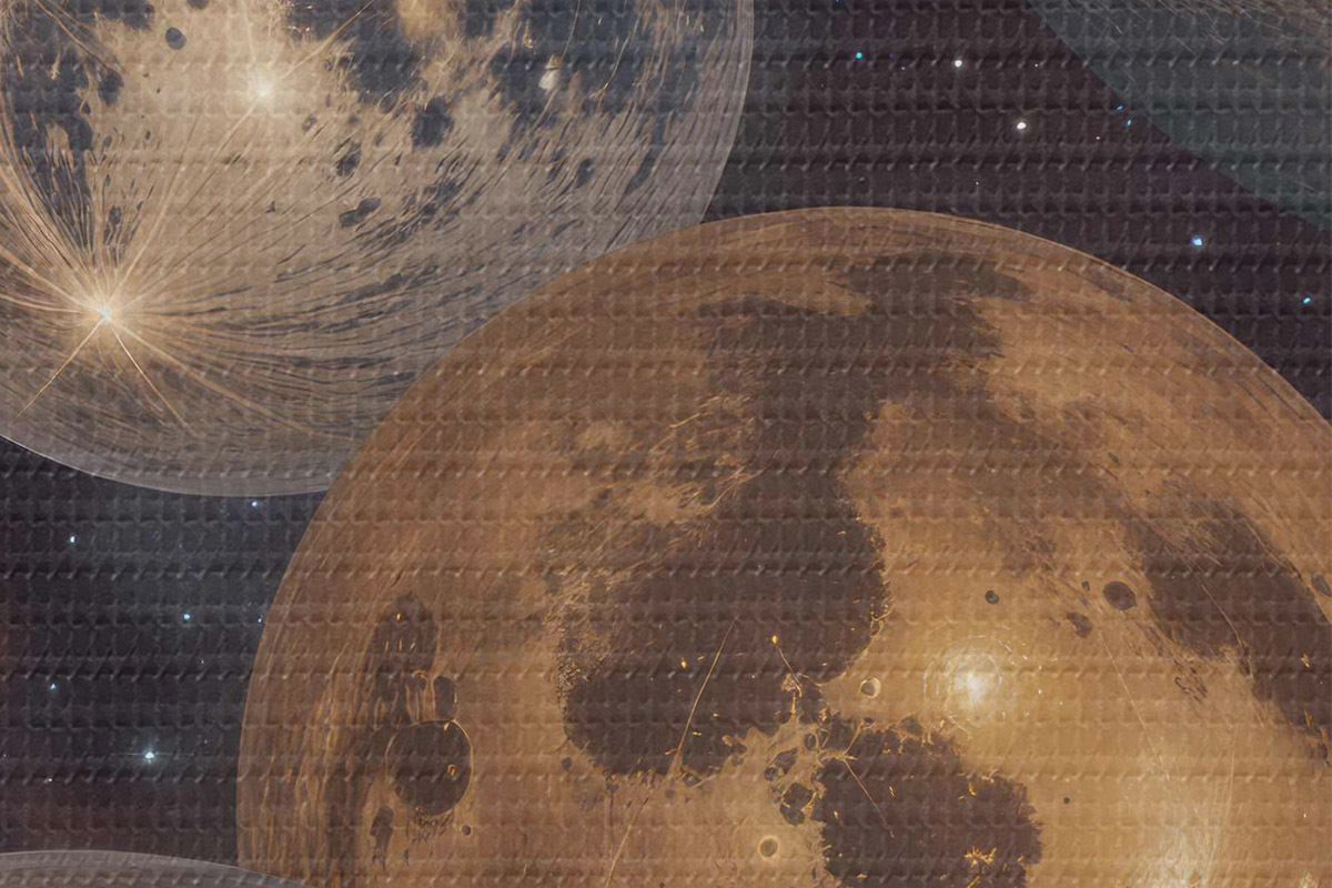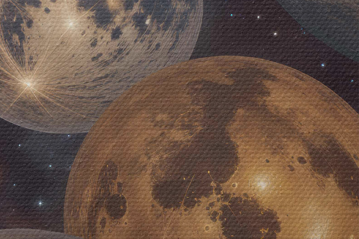 Immagine Stampa spaziale astratta con pianeti e lune colorate che fluttuano nel cielo notturno stellato Nr r40607