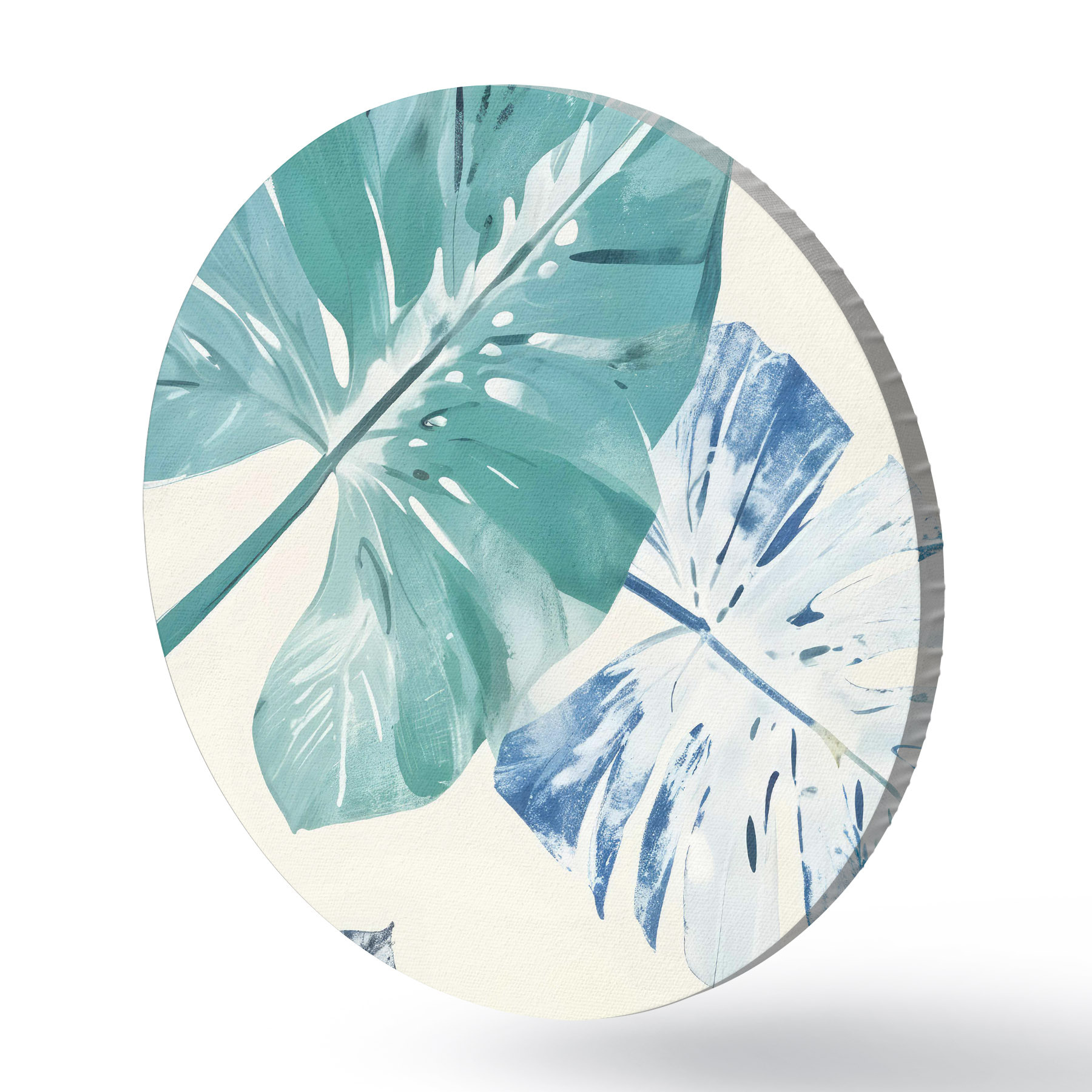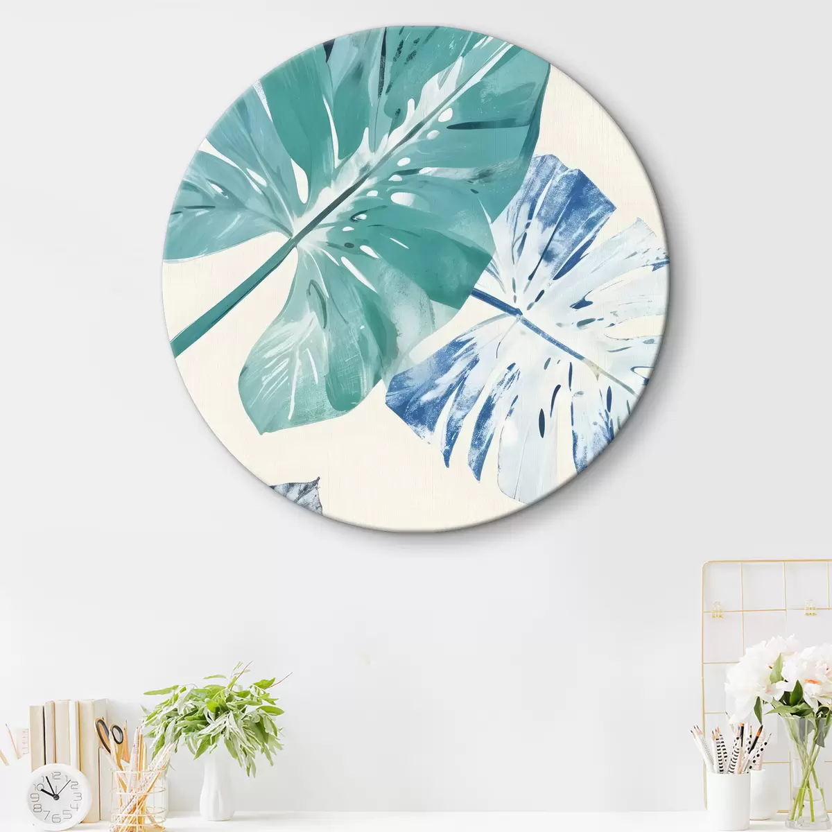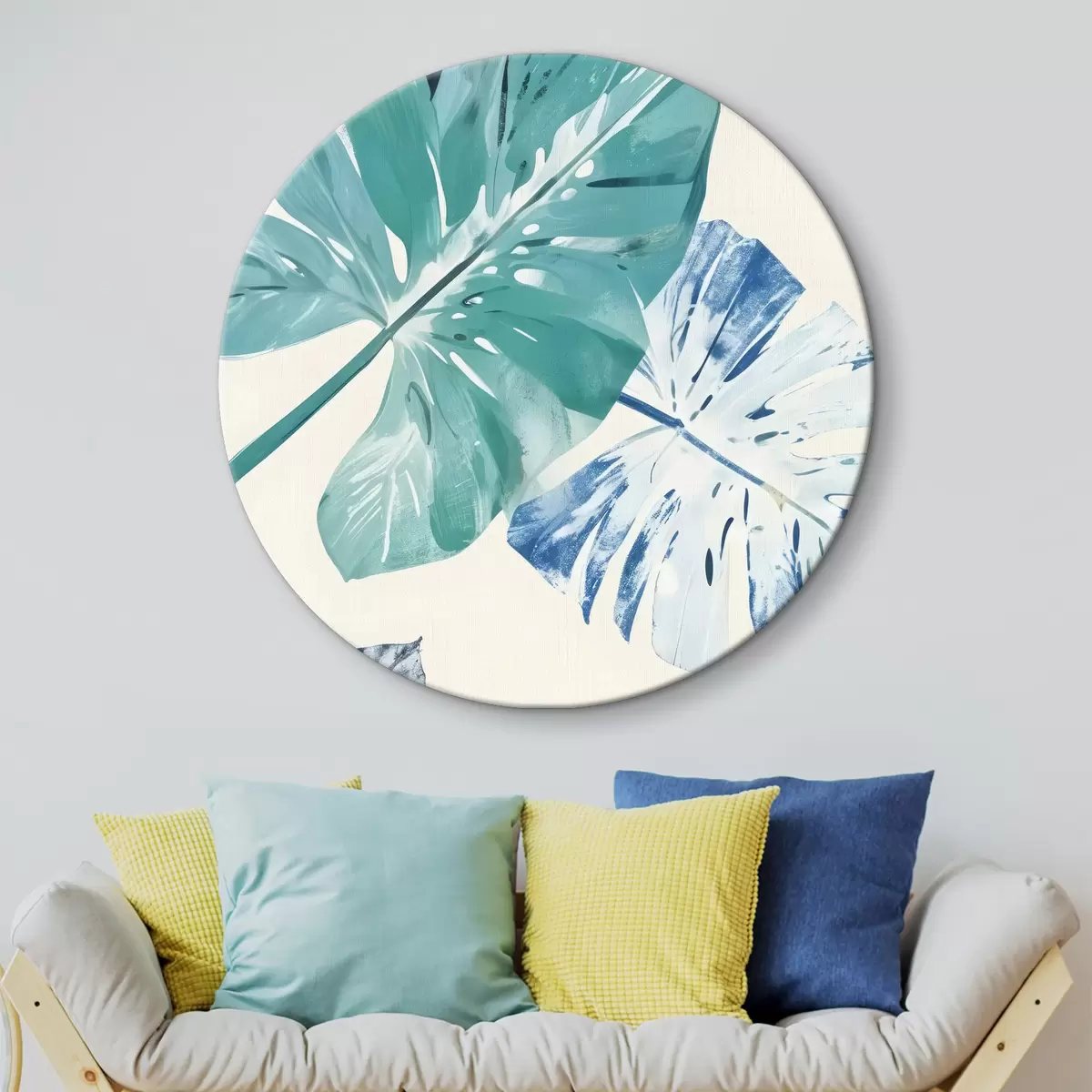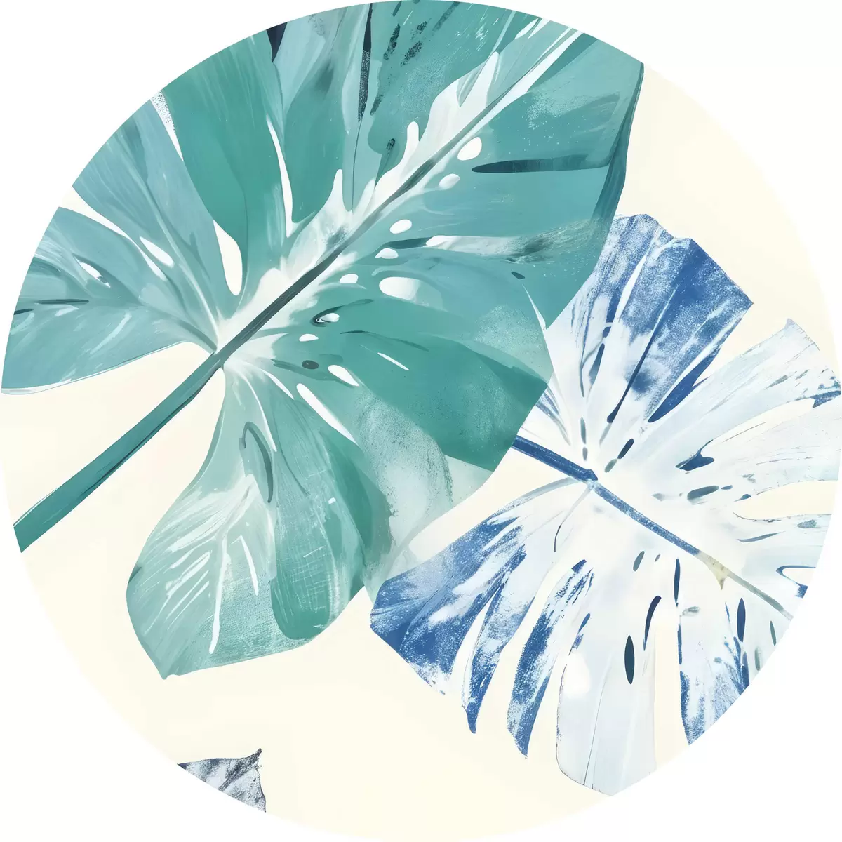 Quadri rotondi Stampa con grandi foglie tropicali nei toni del blu e del verde su sfondo chiaro r40608