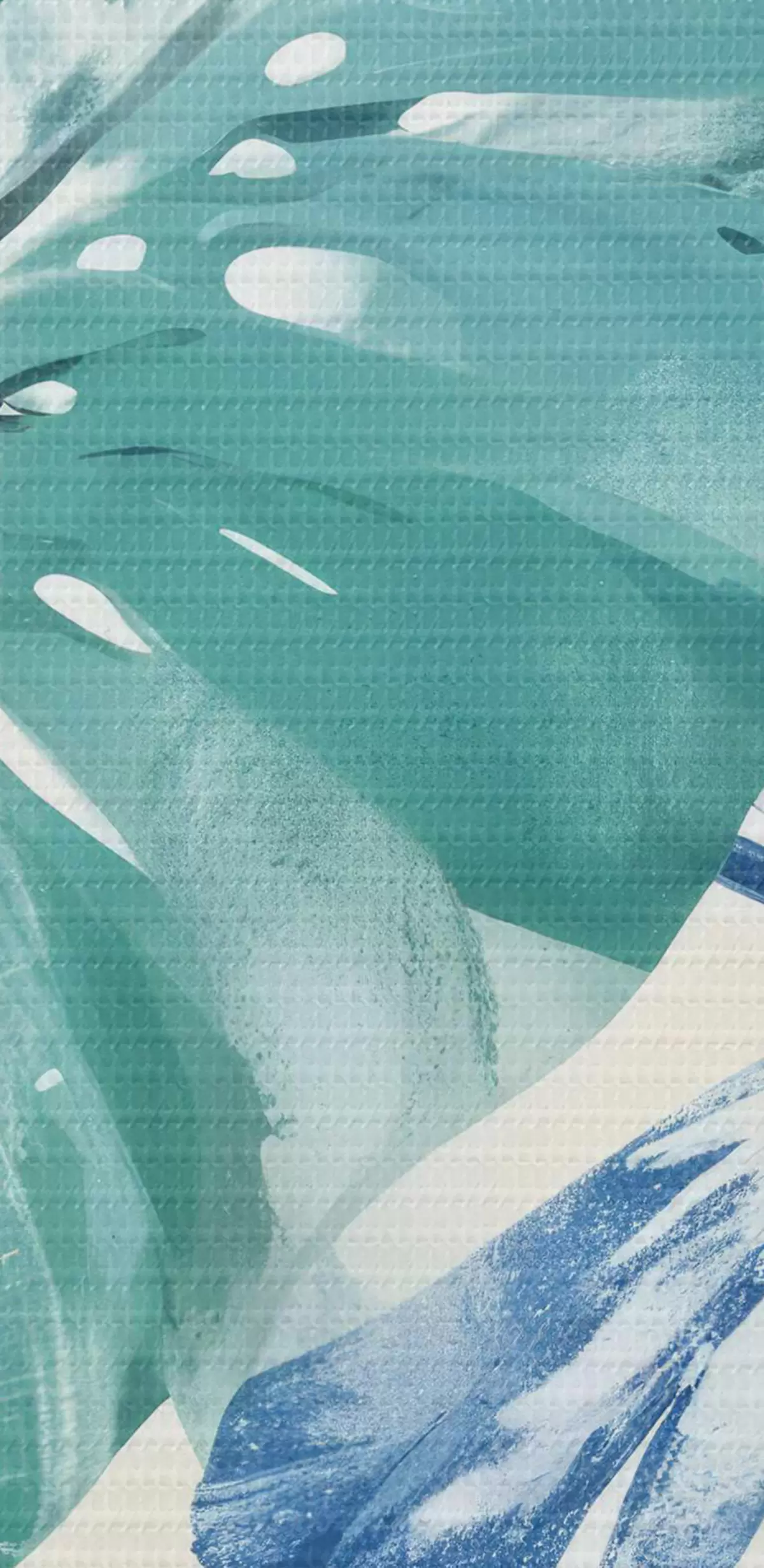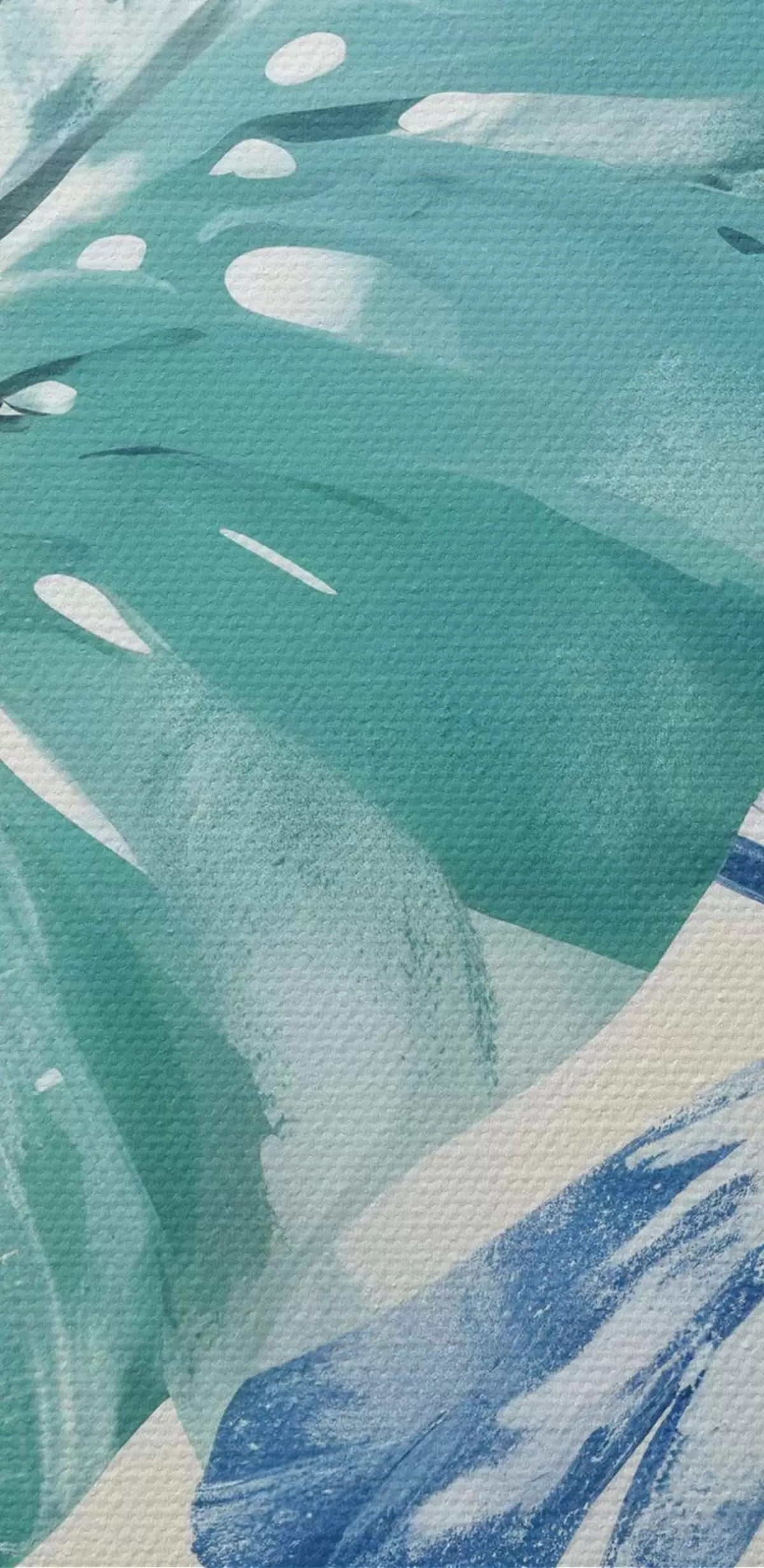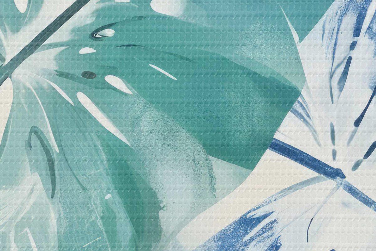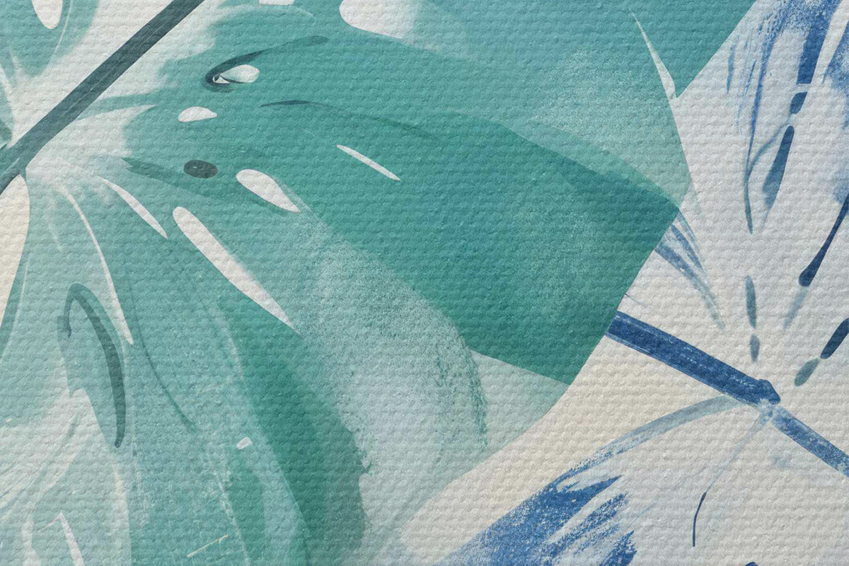 Immagine Stampa con grandi foglie tropicali nei toni del blu e del verde su sfondo chiaro Nr r40608