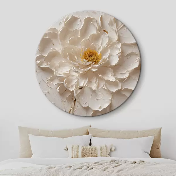 Quadri rotondi Fiore bianco in olio su sfondo bianco r40618