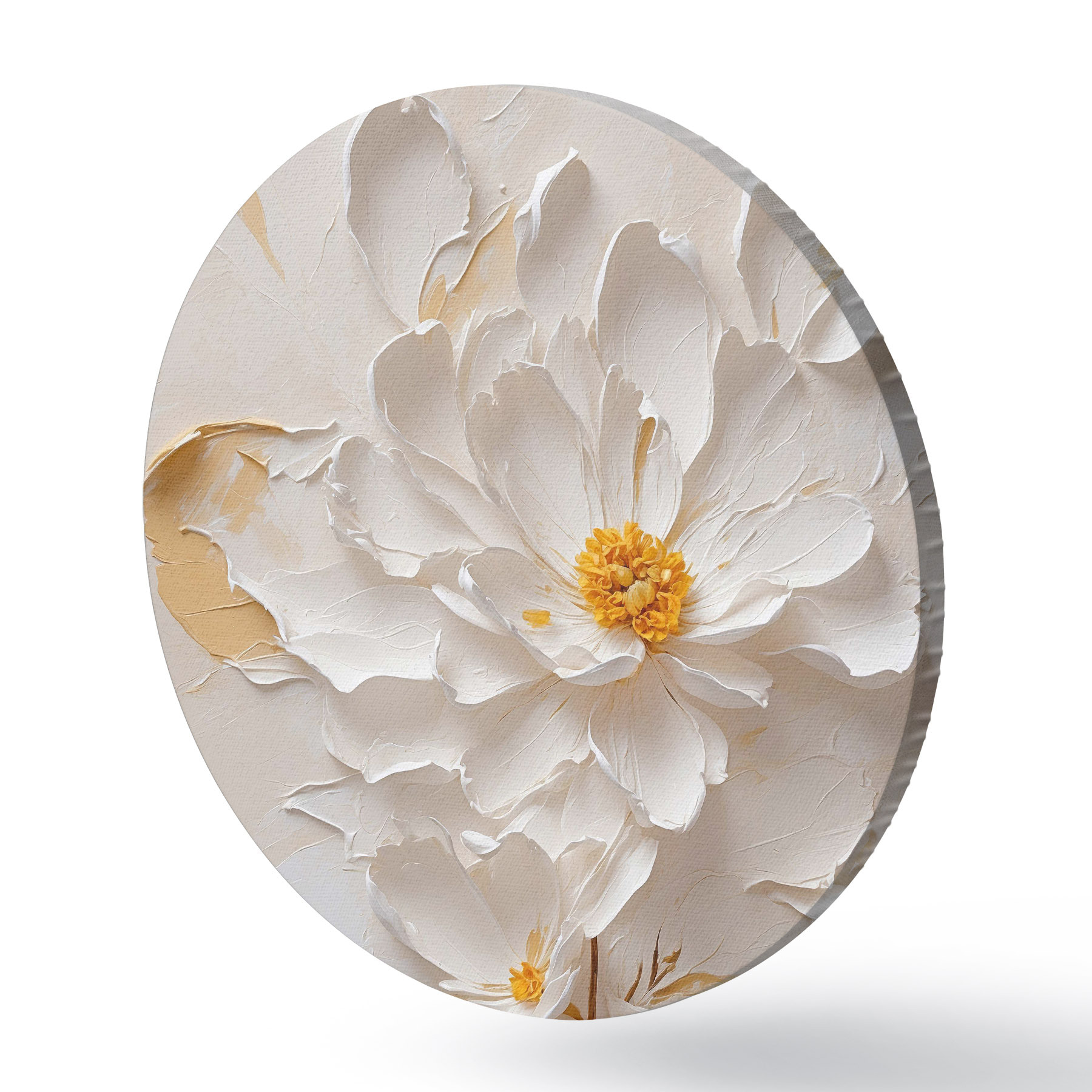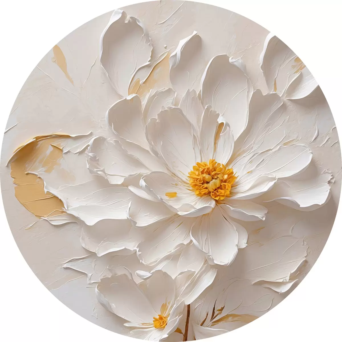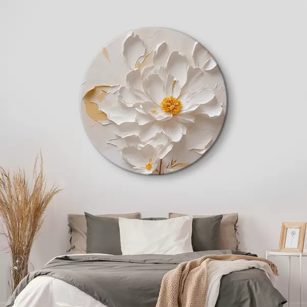 Quadri rotondi Fiore bianco in olio con gambo marrone r40619