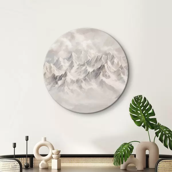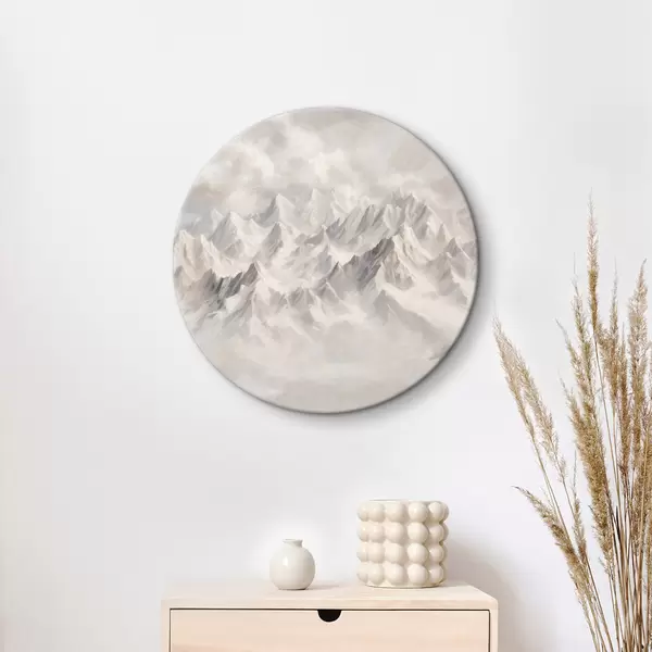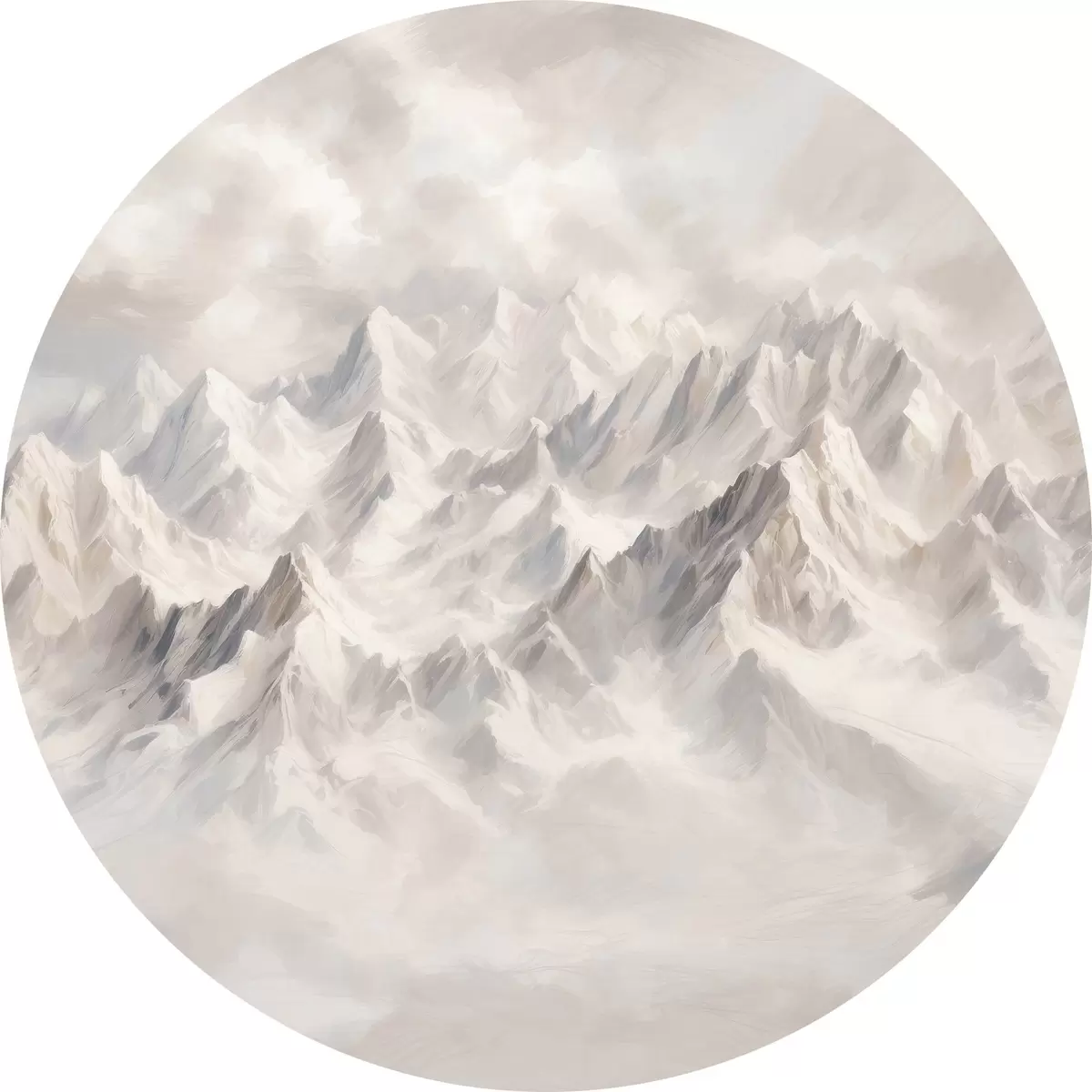 Quadri rotondi Montagne bianche e innevate nella nebbia r40629