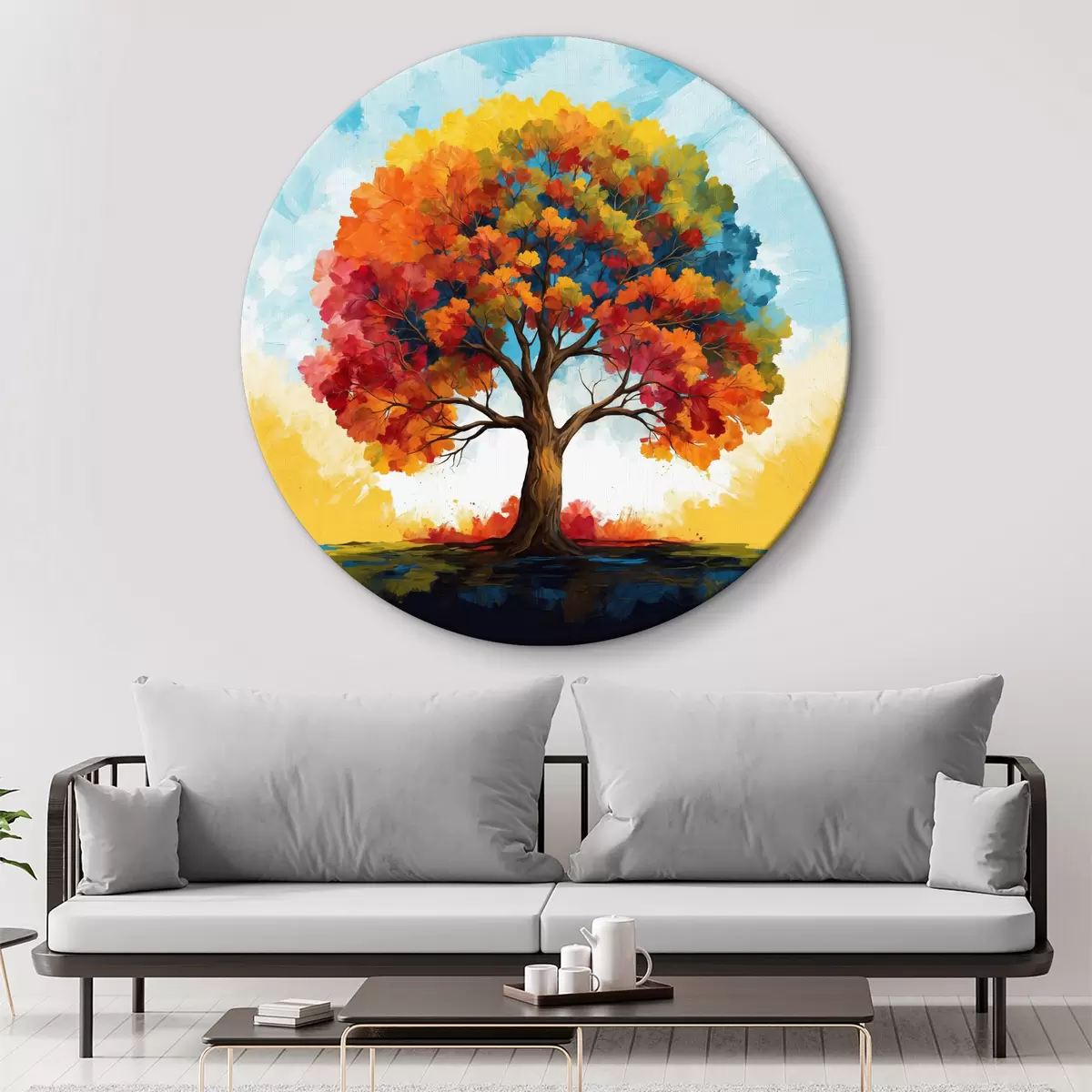 Quadri rotondi Un grande albero con sfumature multicolori r40638