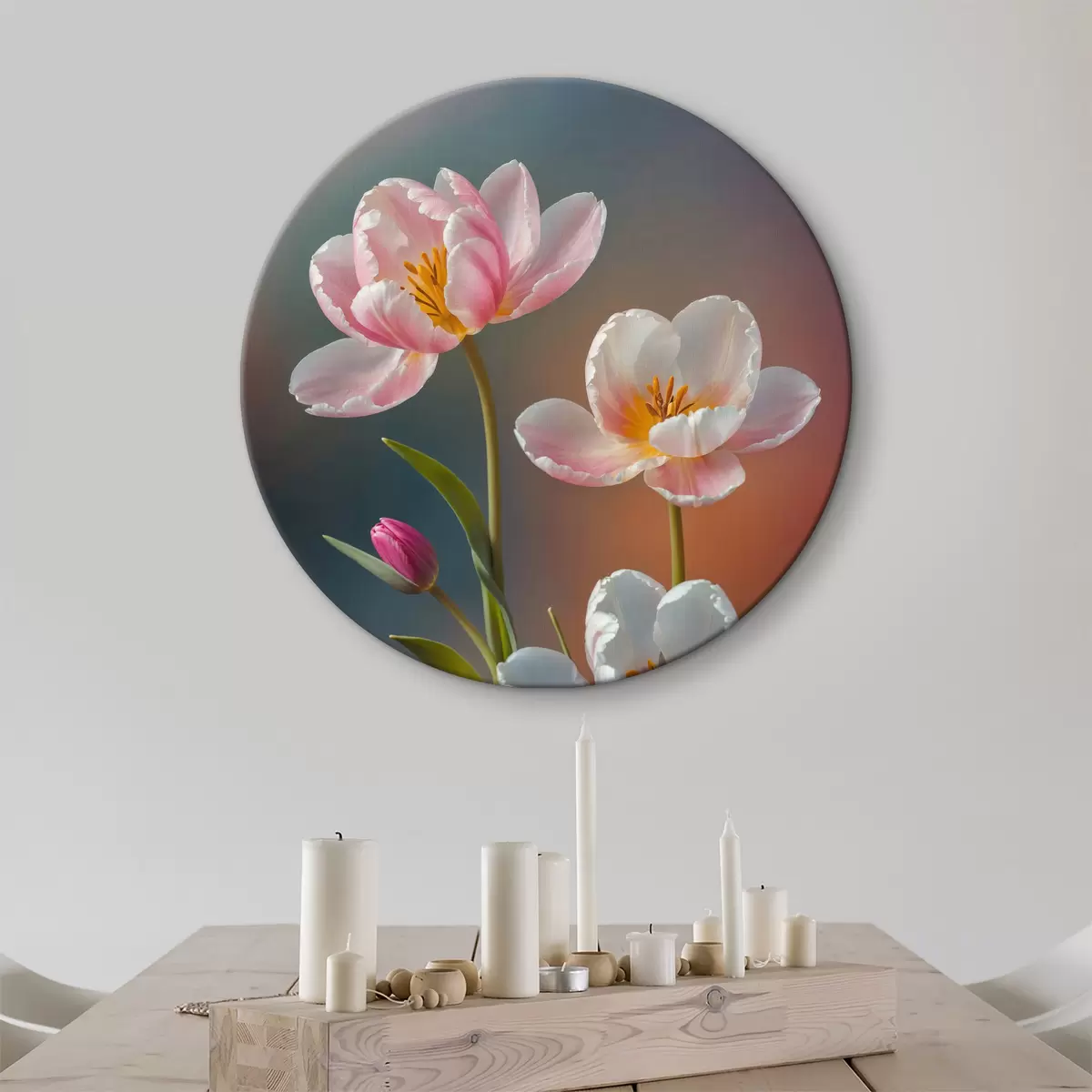 Quadri rotondi Fiori rosa su sfondo sfocato r40644