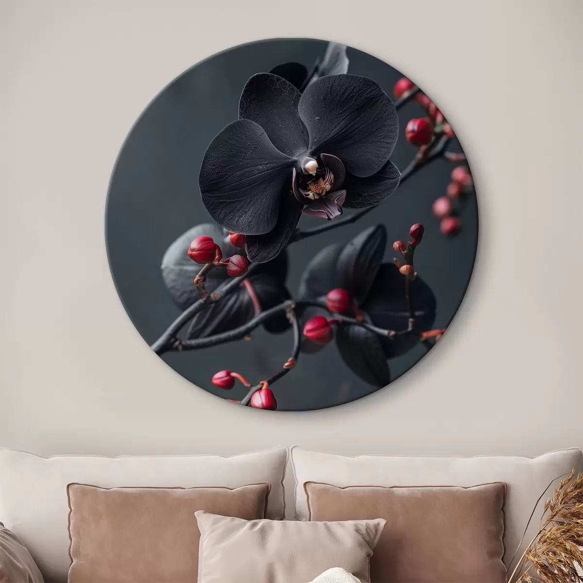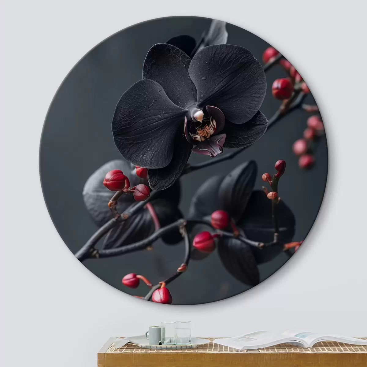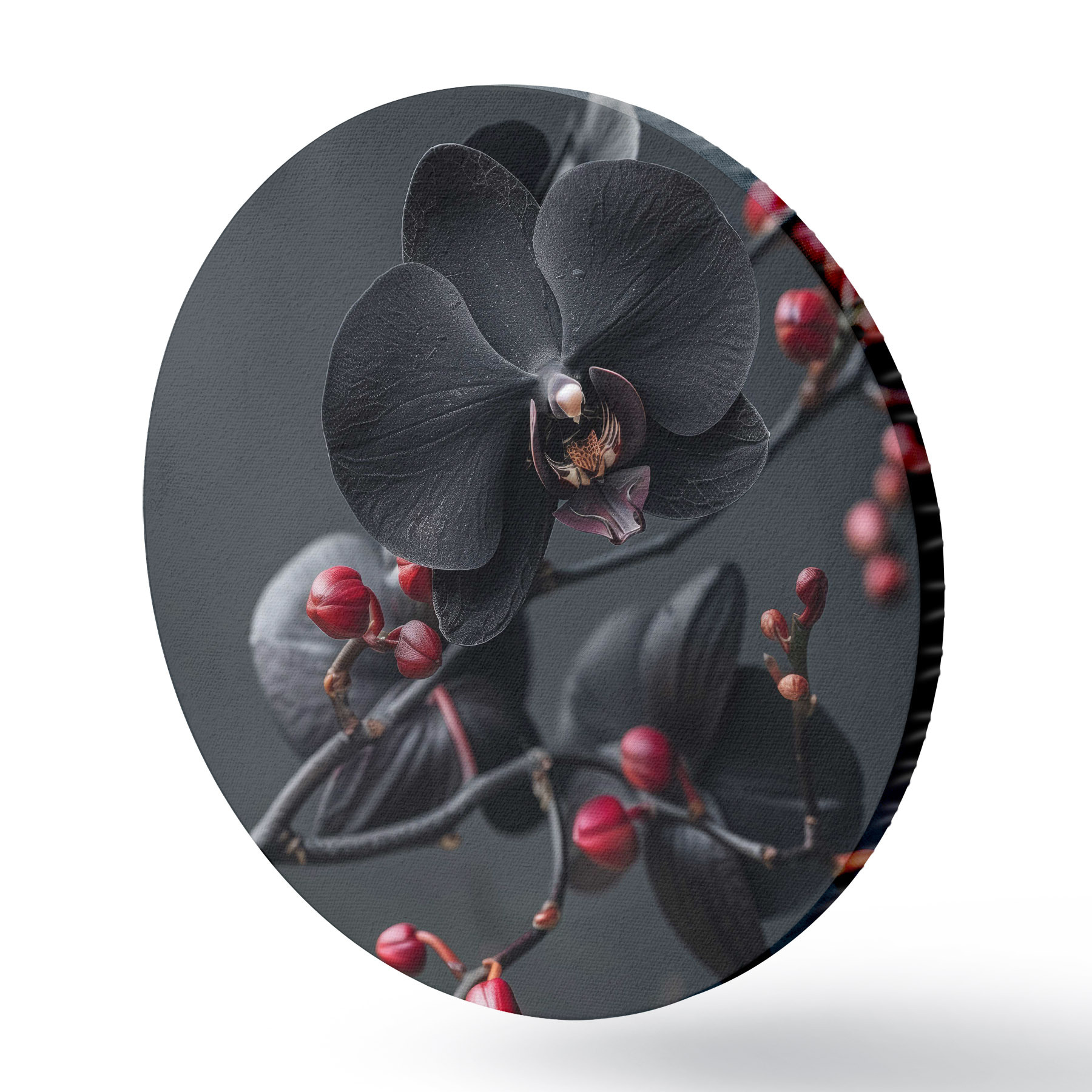 Quadri rotondi Elegante composizione floreale con orchidea nera r40663
