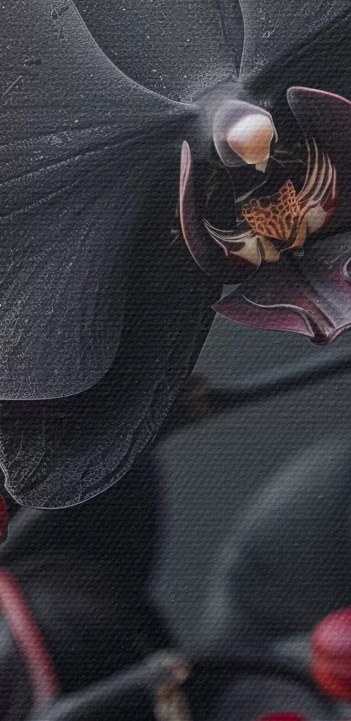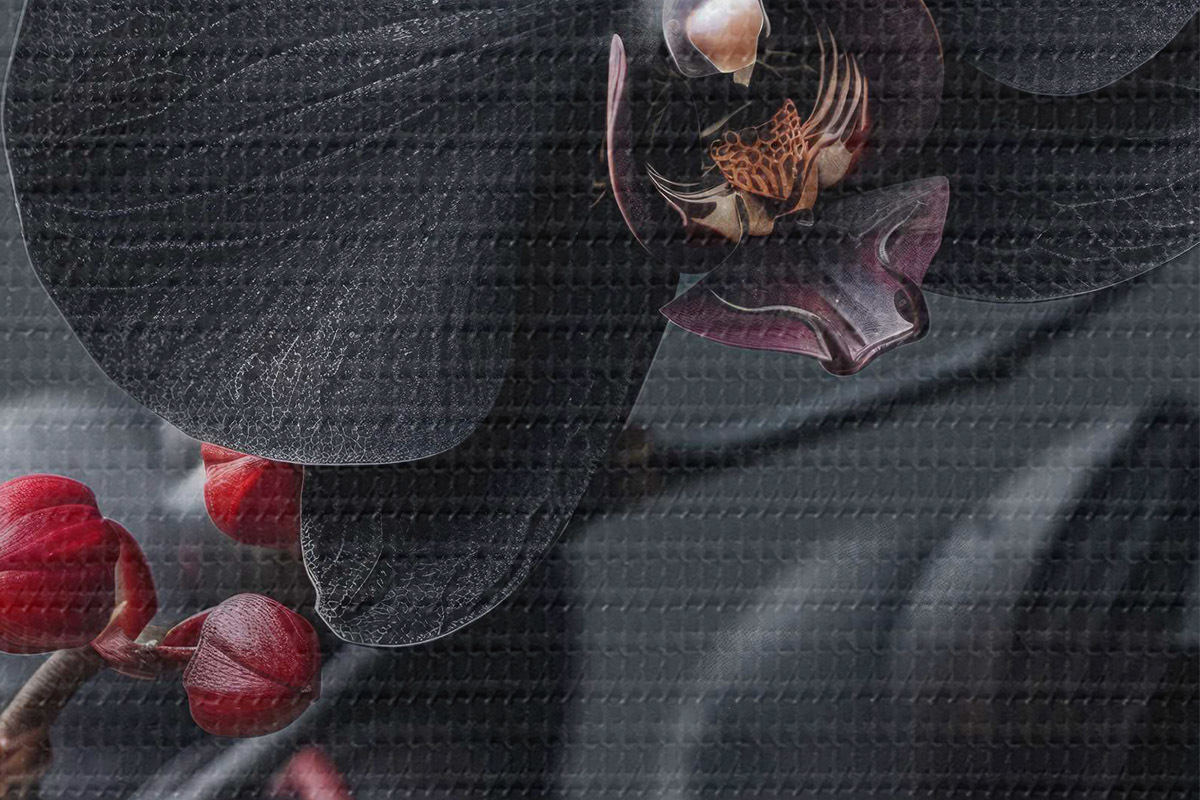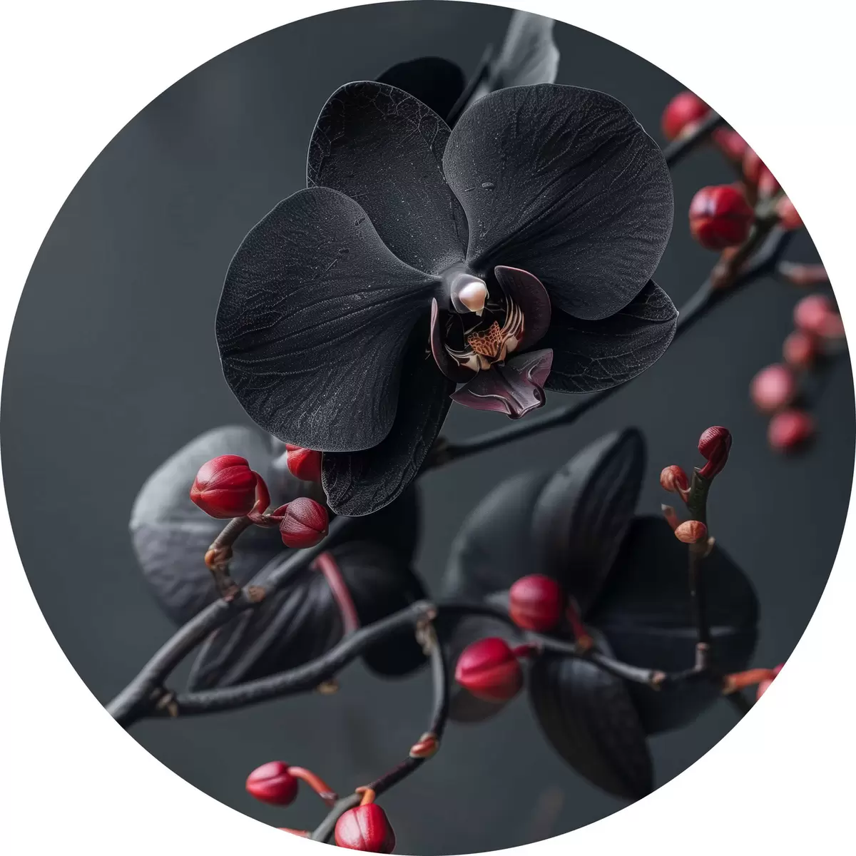 Quadri rotondi Elegante composizione floreale con orchidea nera r40663
