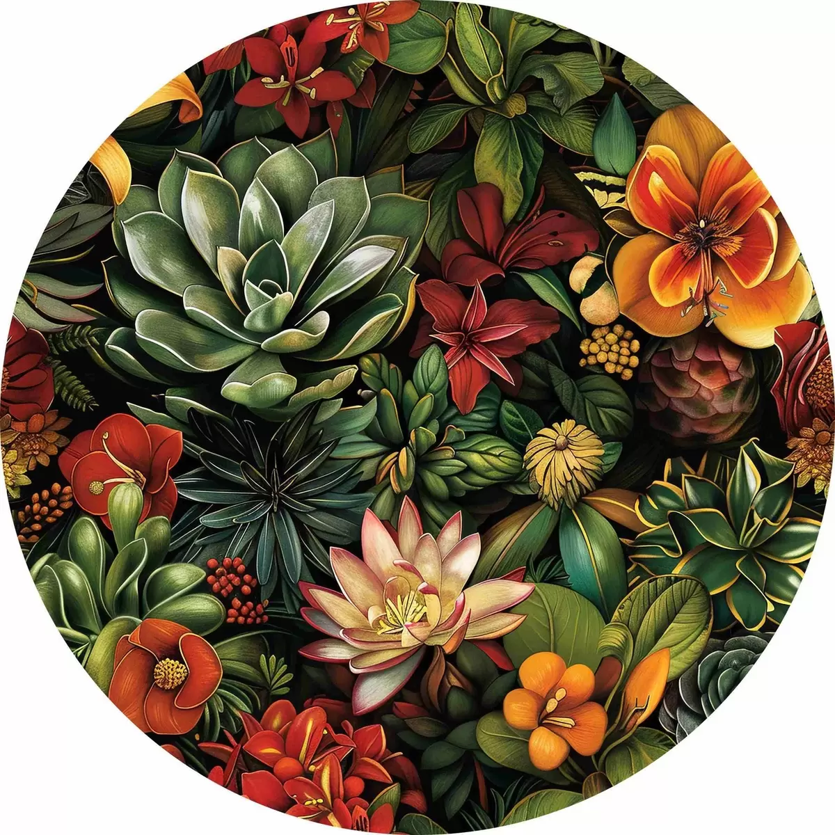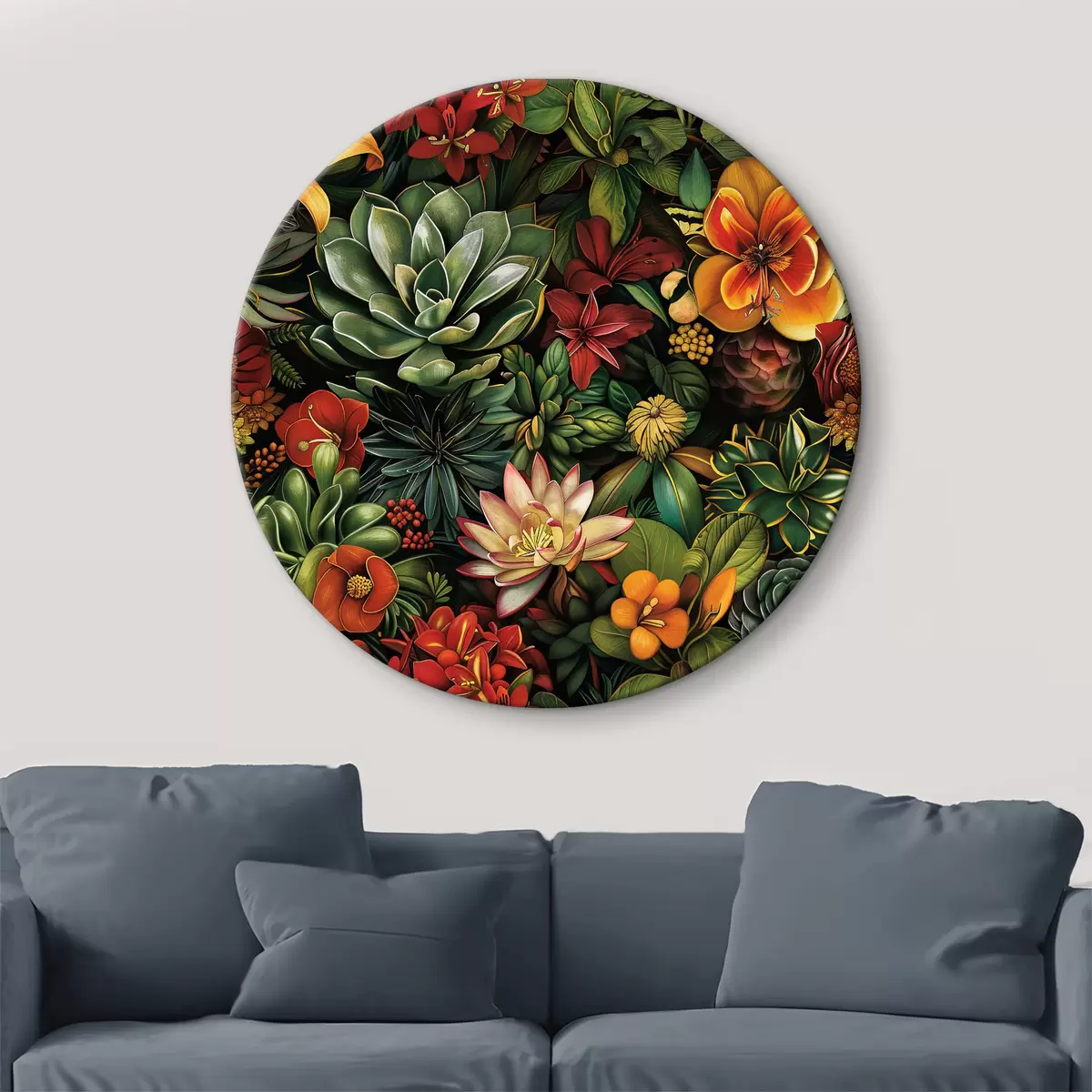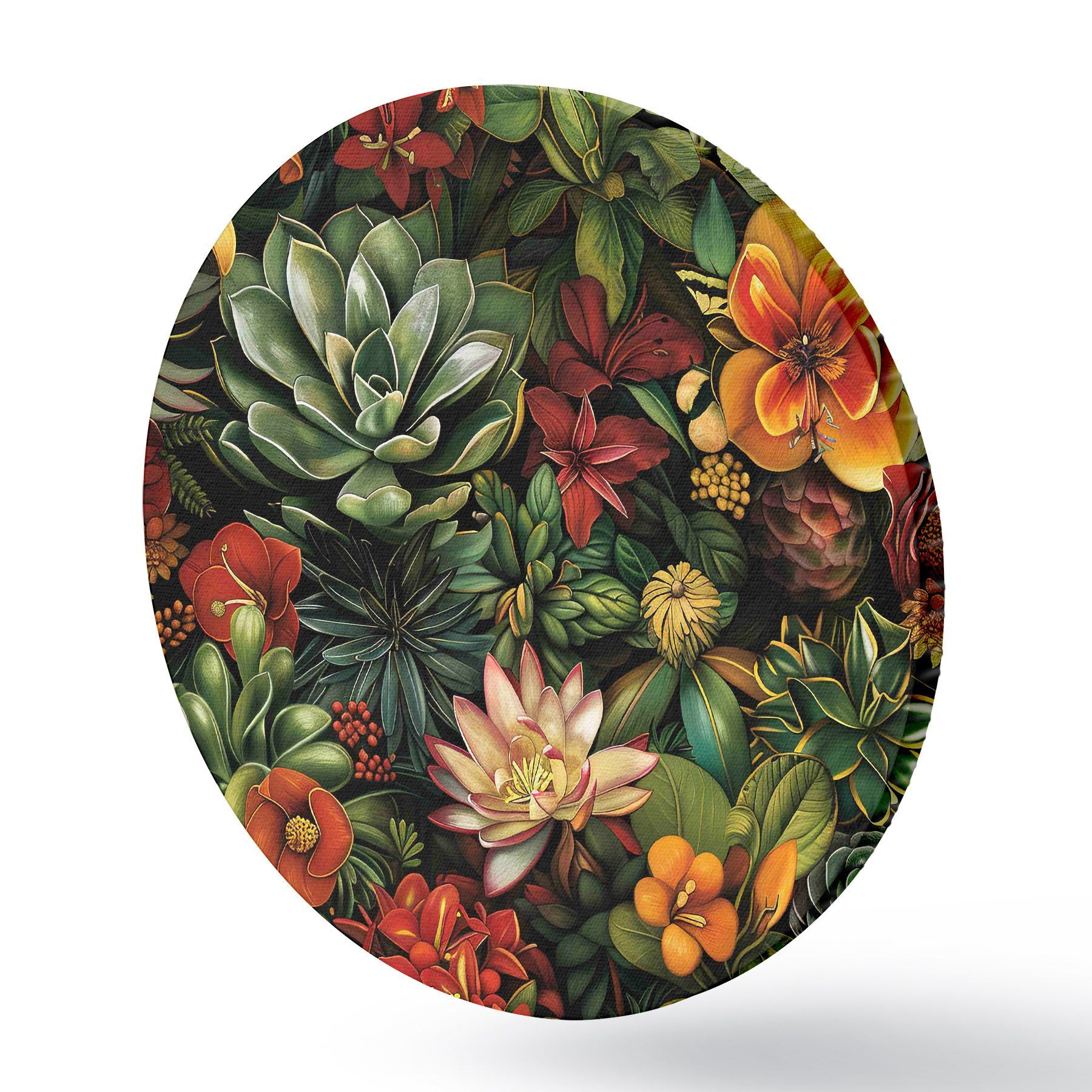 Quadri rotondi Giardino lussureggiante con piante grasse e fiori tropicali r40666