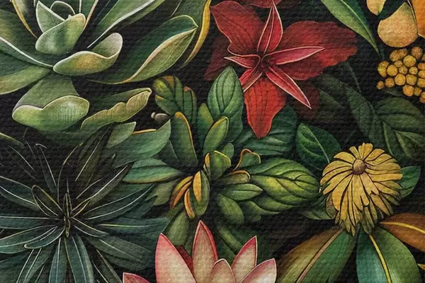 Immagine Giardino lussureggiante con piante grasse e fiori tropicali Nr r40666