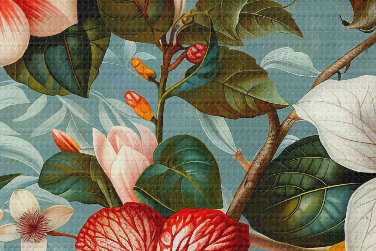 Immagine Composizione con vari fiori verdi e tropicali su uno sfondo blu Nr r40668