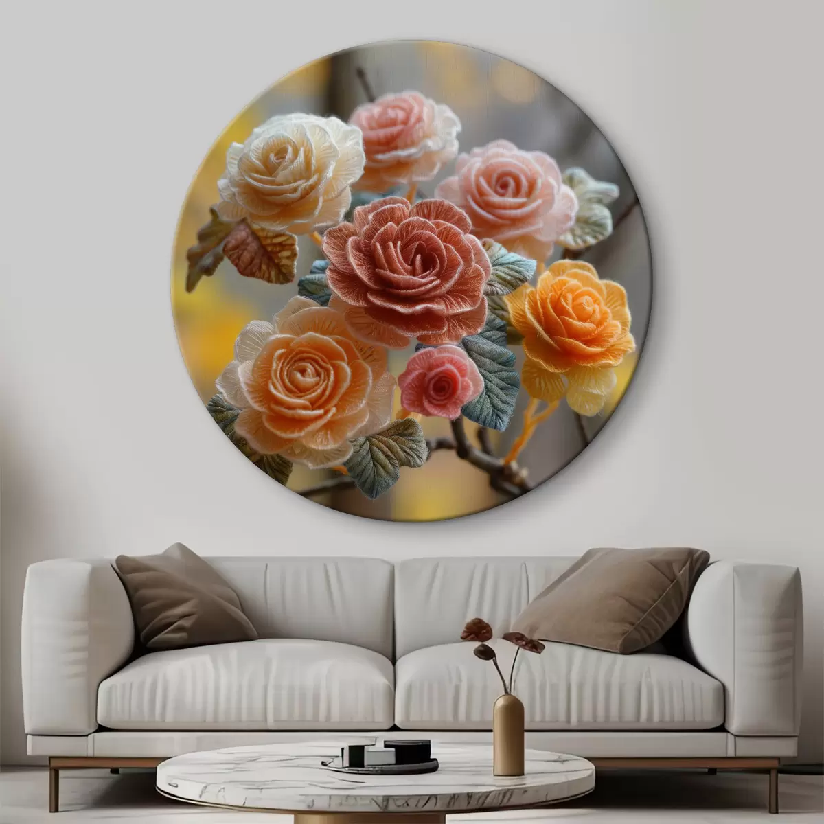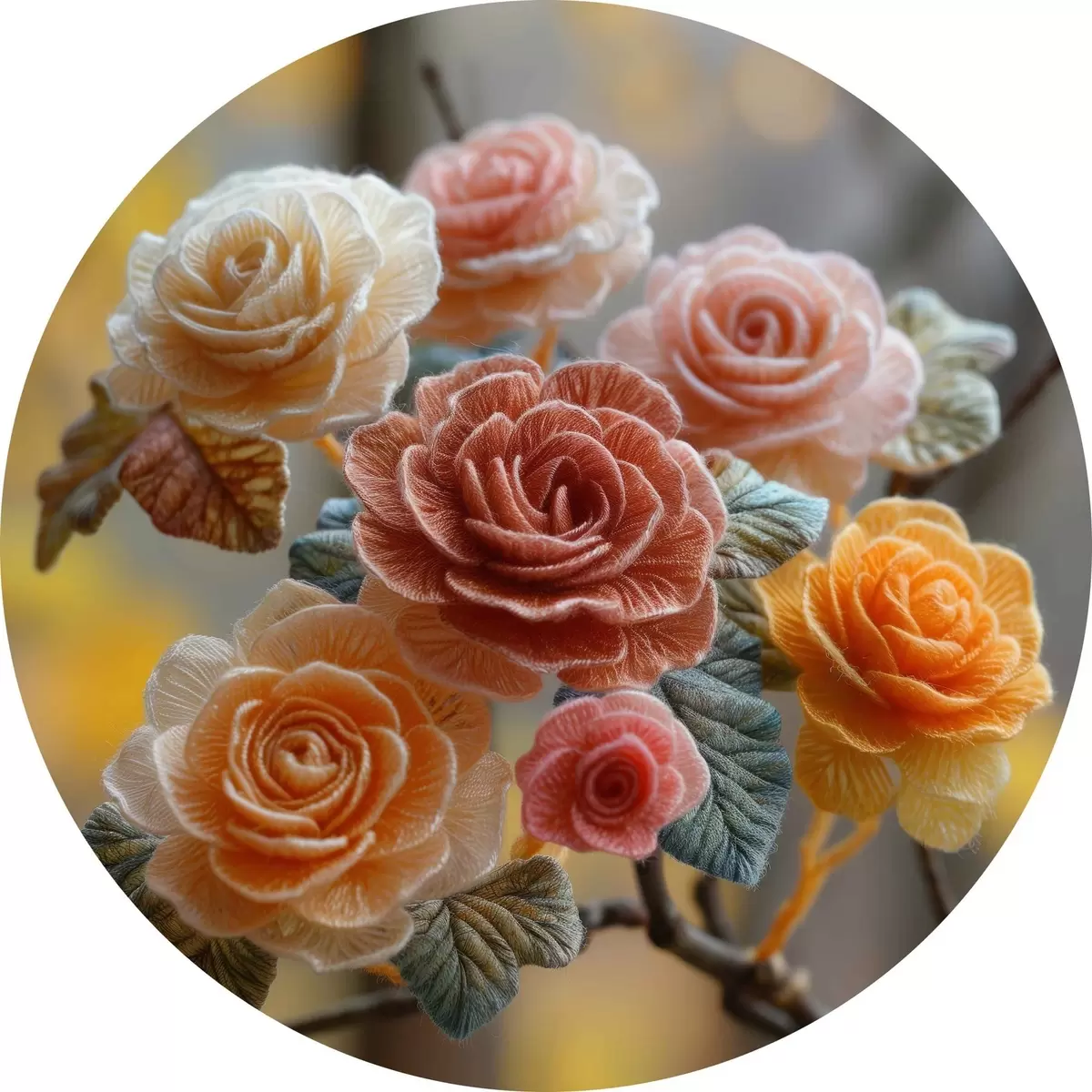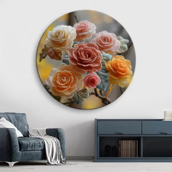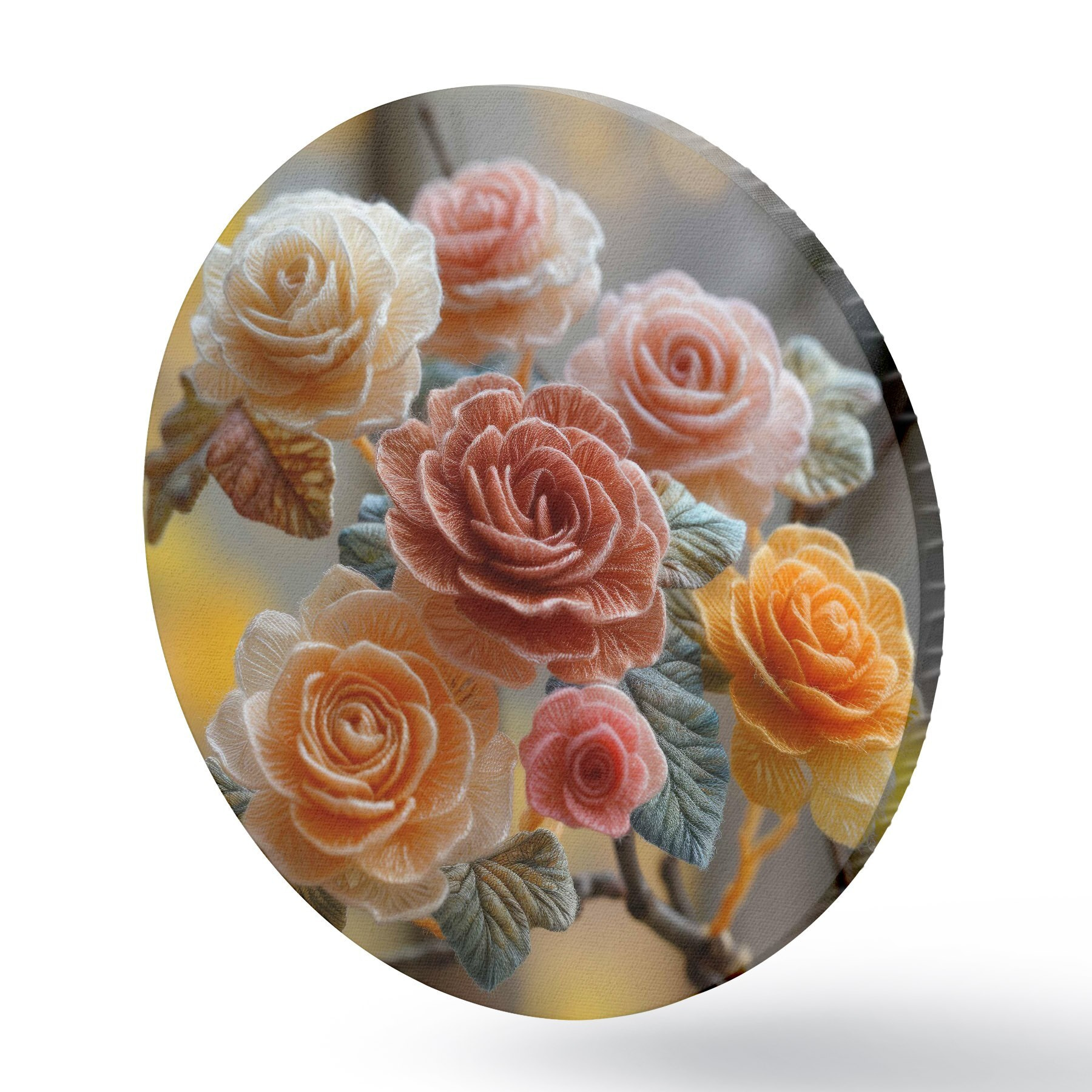 Quadri rotondi Un soffice bouquet di rose lavorato a maglia in stile artigianale r40673