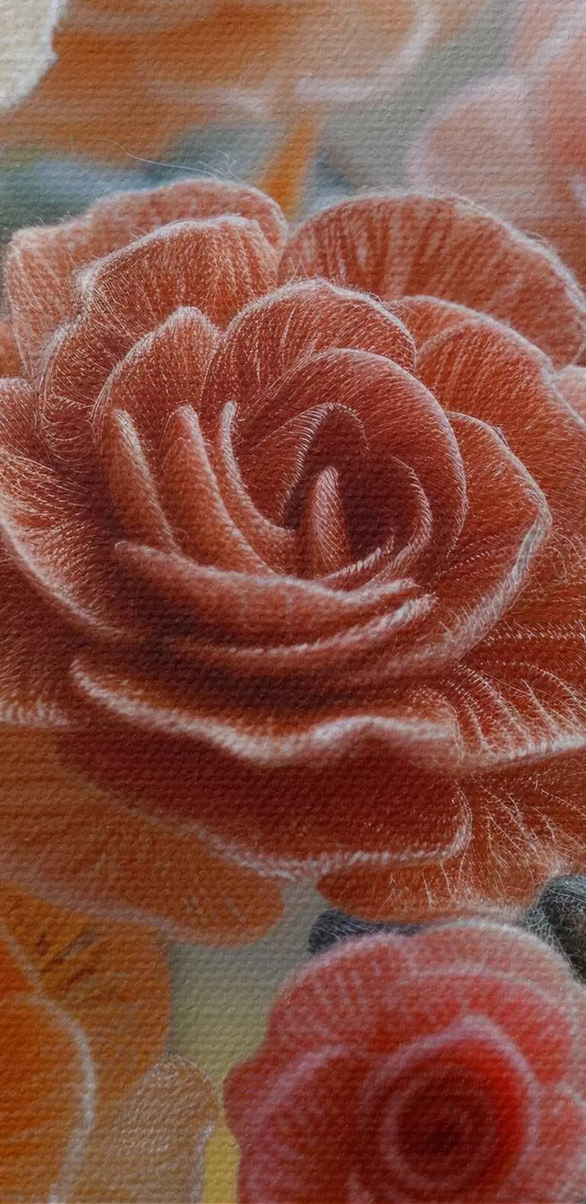 La fine trama dei fili di questa tela ricorda la superficie delle tele degli artisti professionisti.