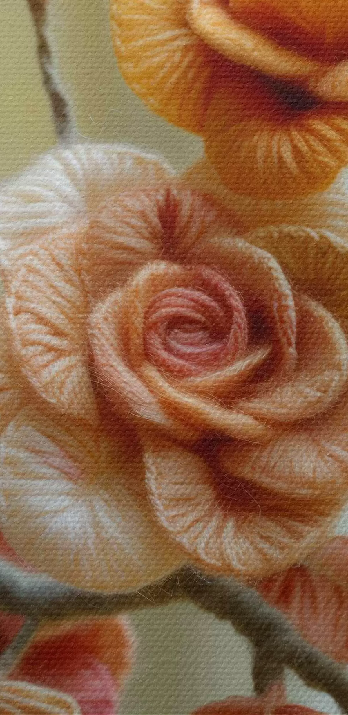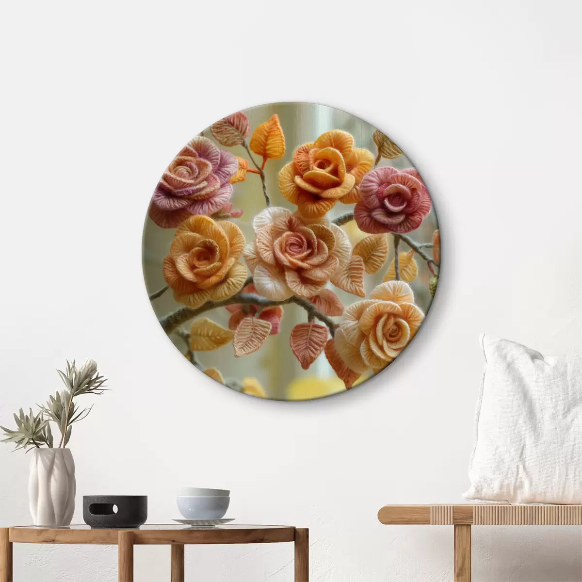 Quadri rotondi Rose tessute in morbida e soffice lana su legno r40674