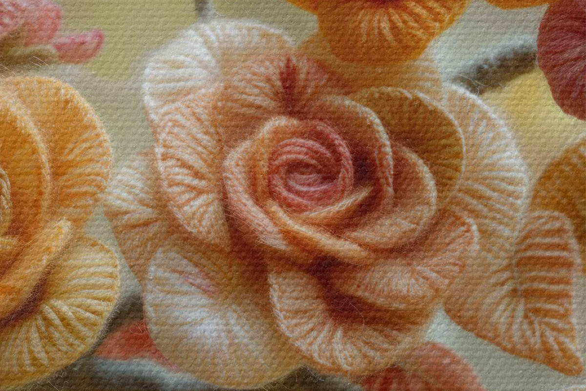 Immagine Rose tessute in morbida e soffice lana su legno Nr r40674