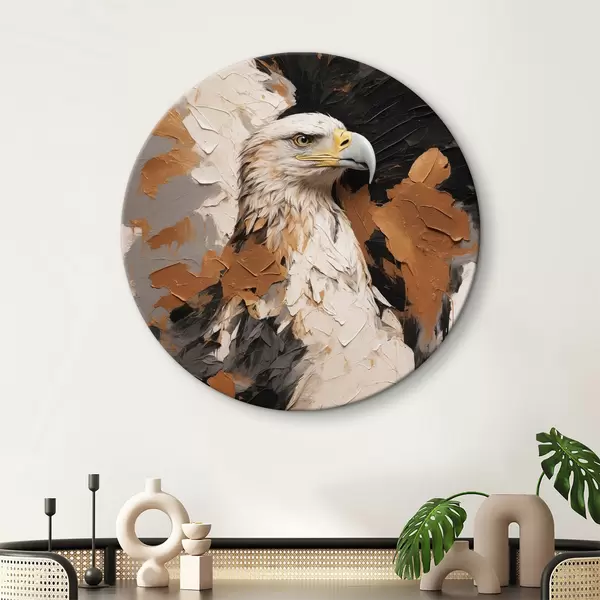 Quadri rotondi Testa di aquila su sfondo astratto ad olio r40693
