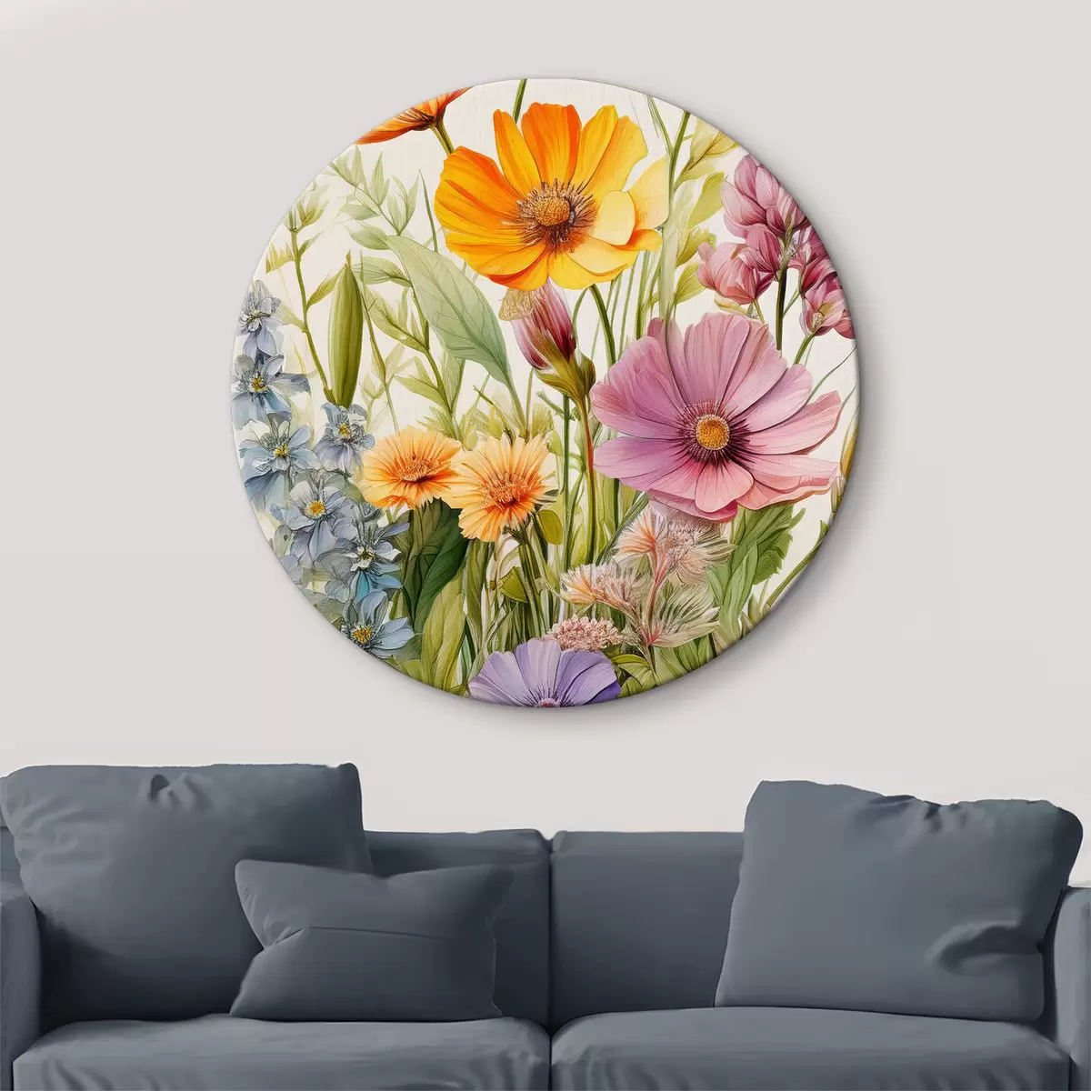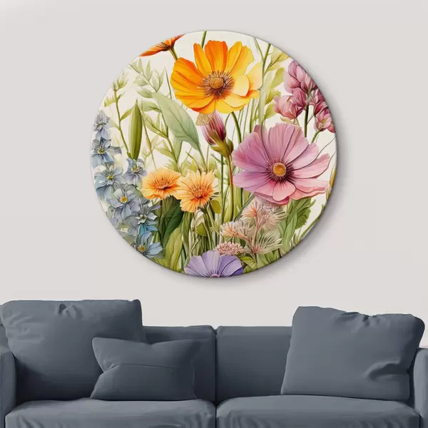 Quadri rotondi fiori di campo multicolori, composizione floreale r40708