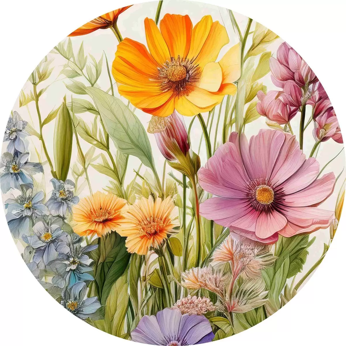Quadri rotondi fiori di campo multicolori, composizione floreale r40708