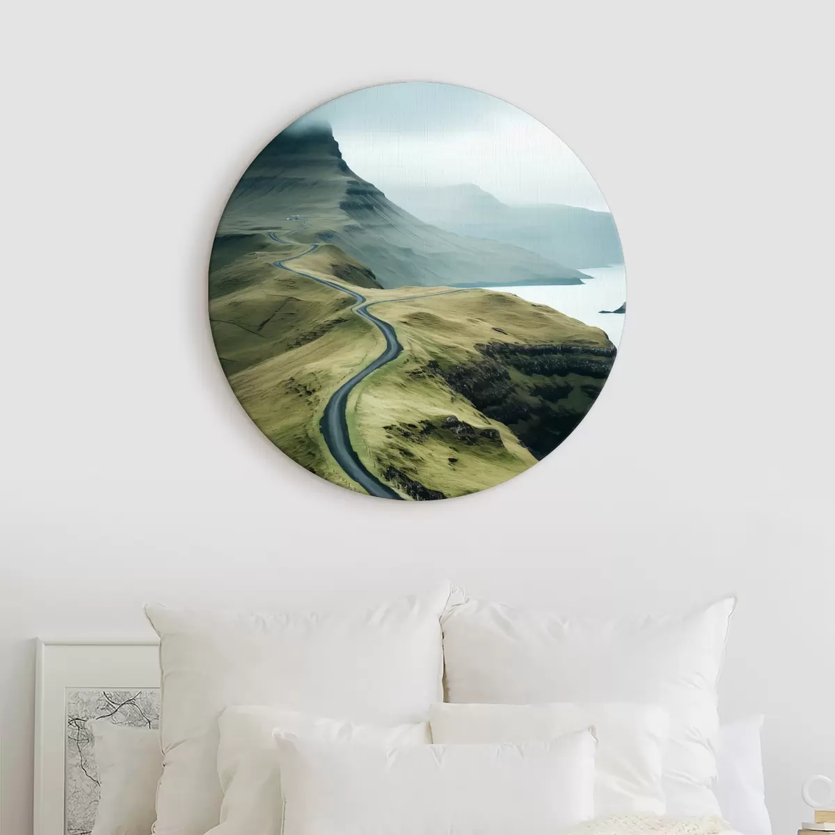 Quadri rotondi Paesaggio stradale minimalista nelle Isole Faroe in riva al mare r40726