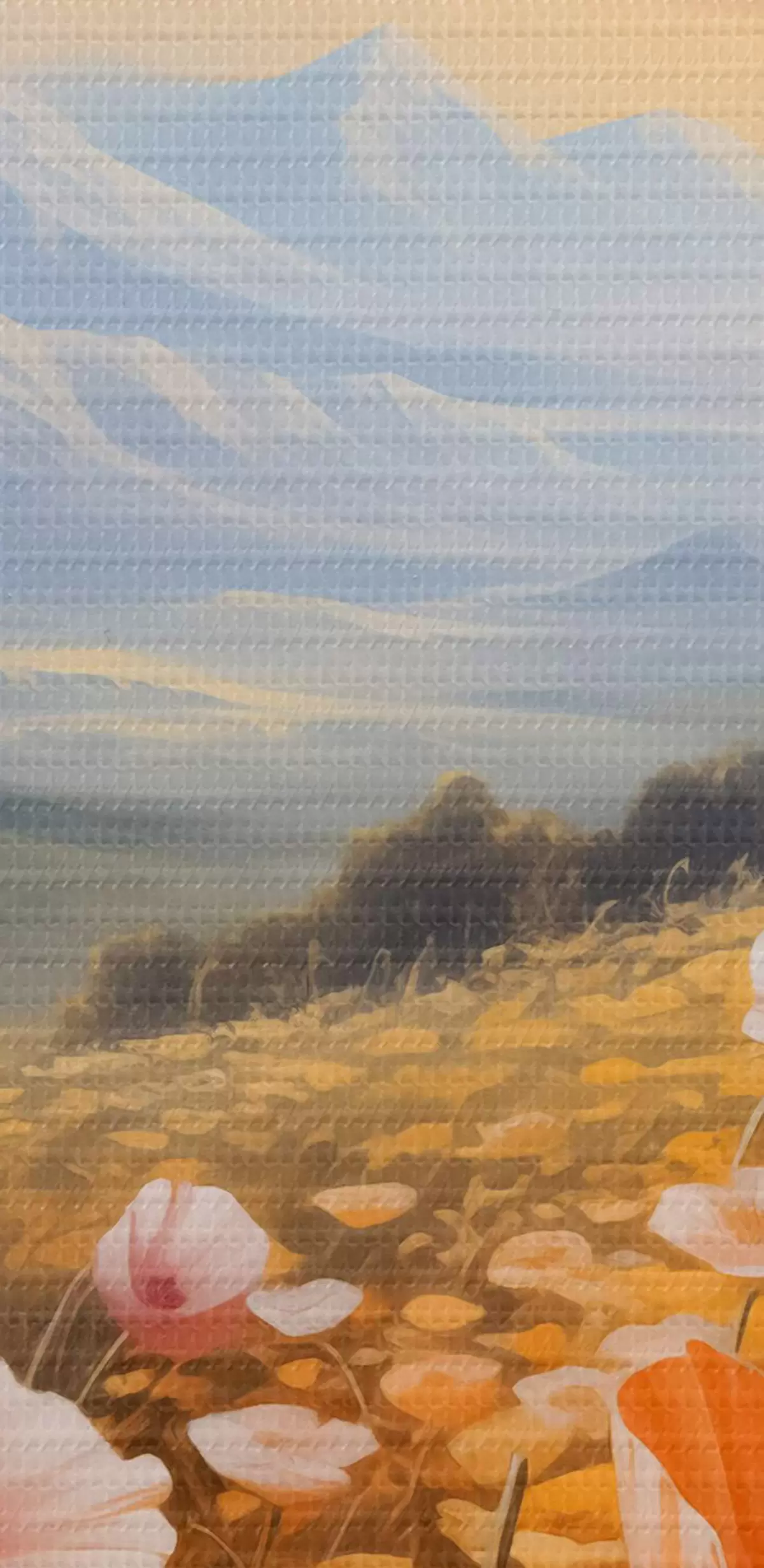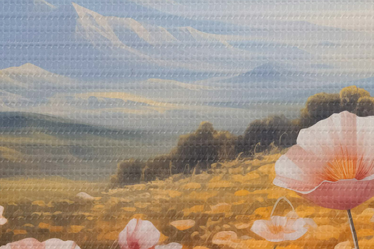 Immagine Un campo di papaveri all'alba con le montagne sullo sfondo Nr r40730