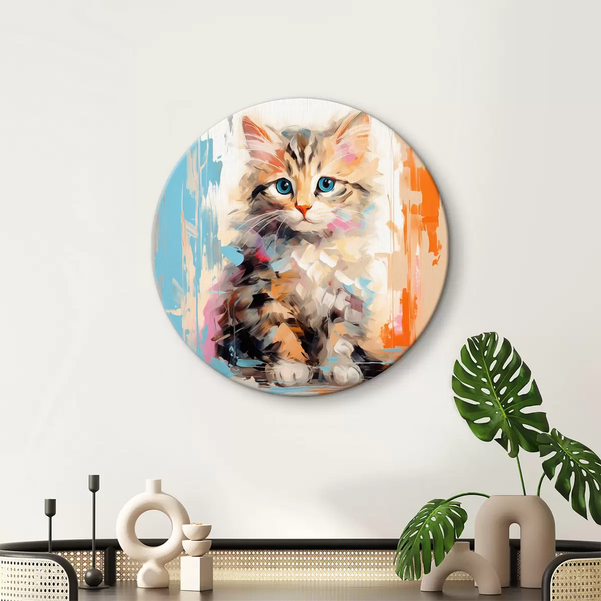 Quadri rotondi Gattino con pennellate r40735