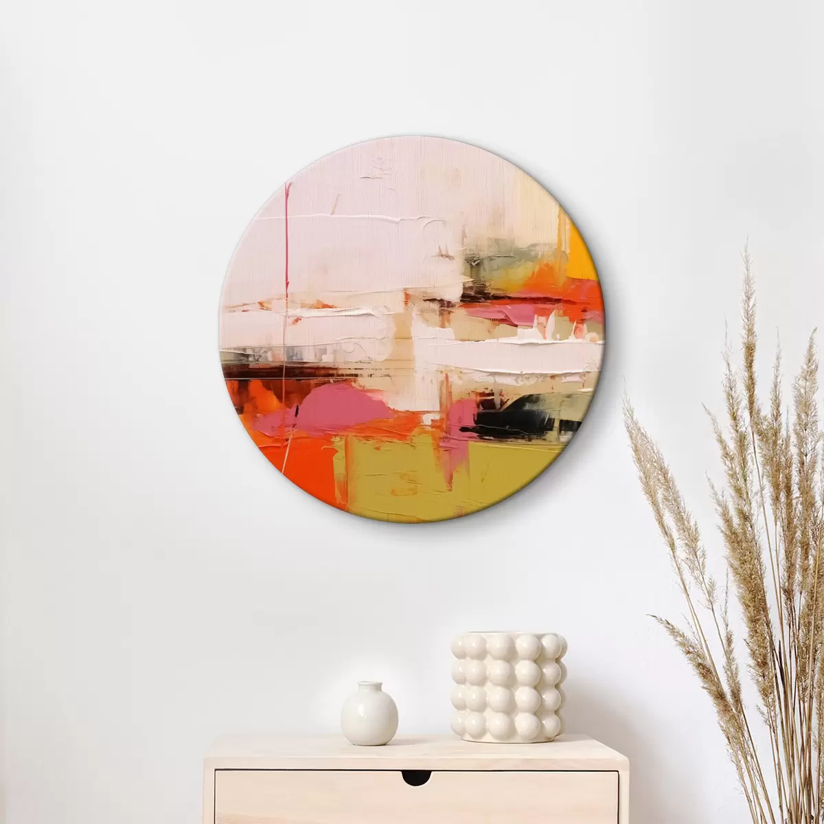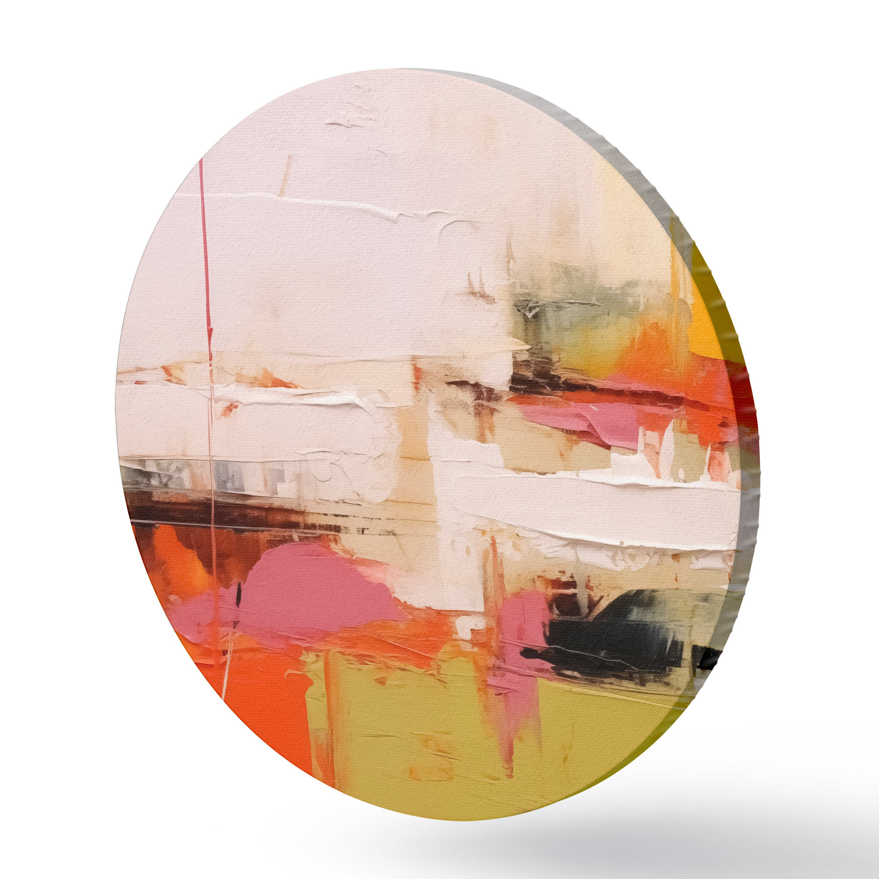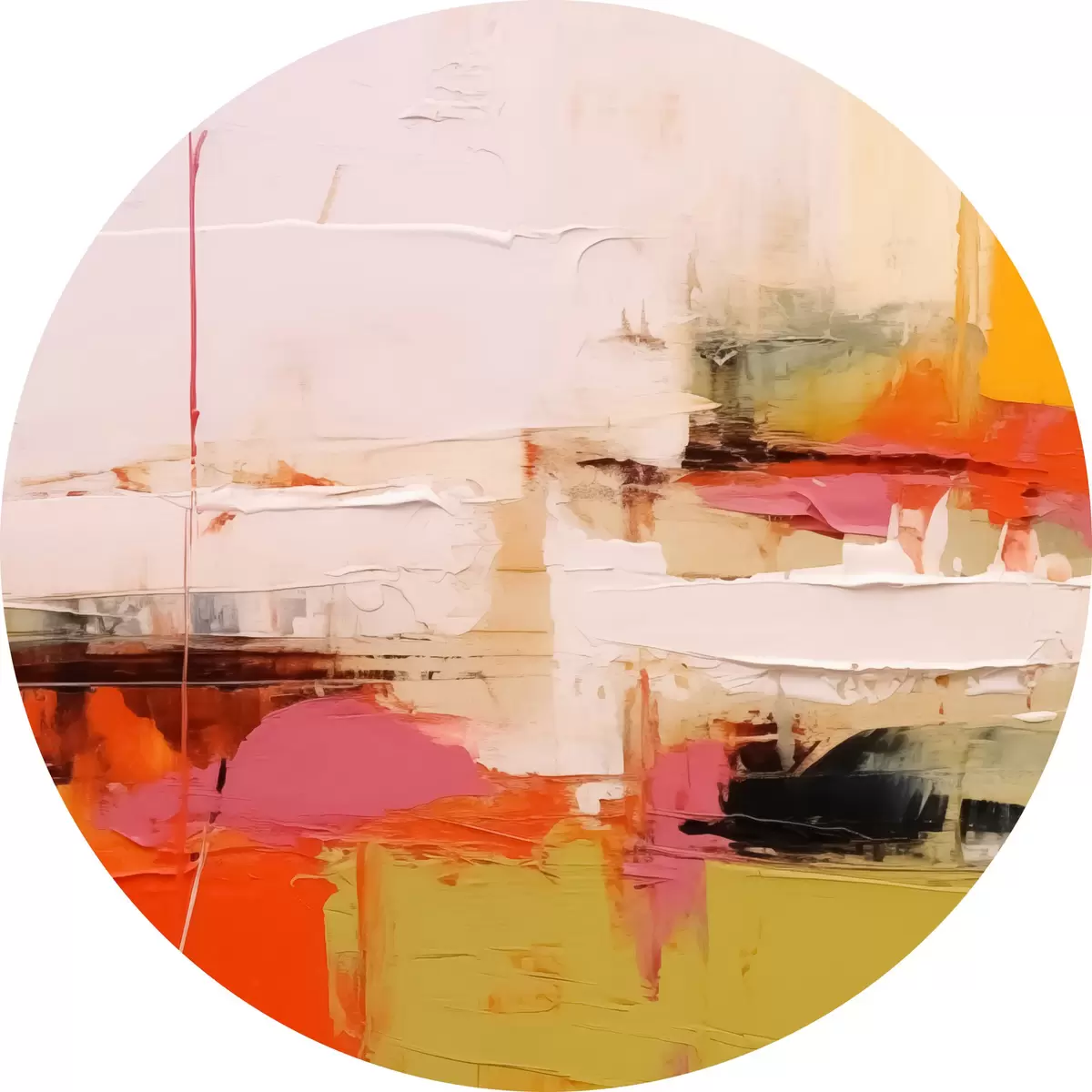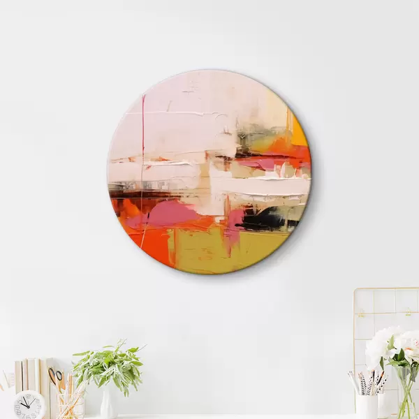 Quadri rotondi Tratti di pittura astratta, colori rosso, giallo, verde, arancione r40747