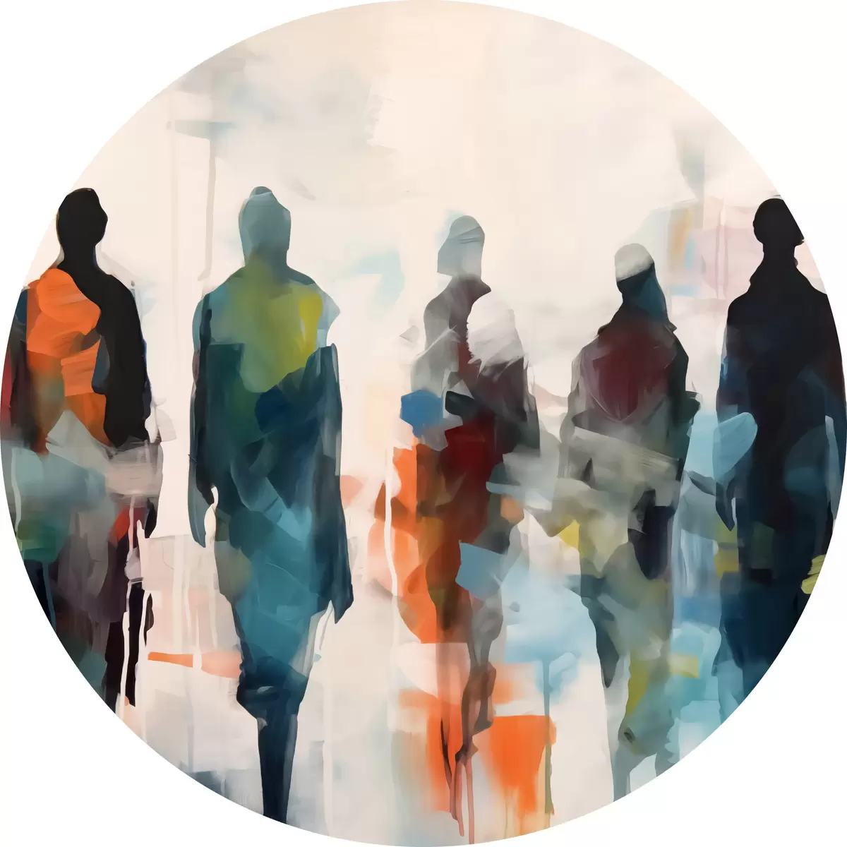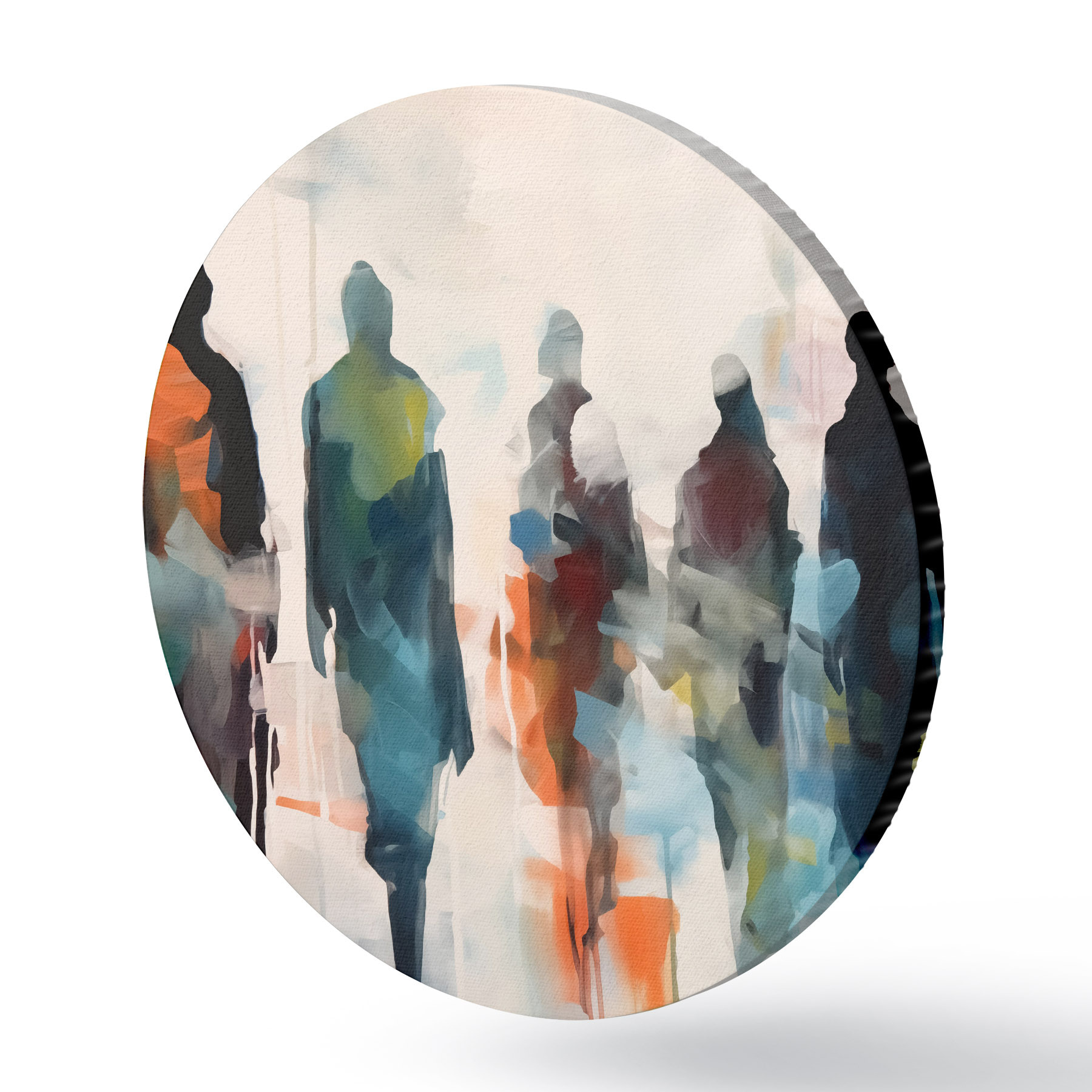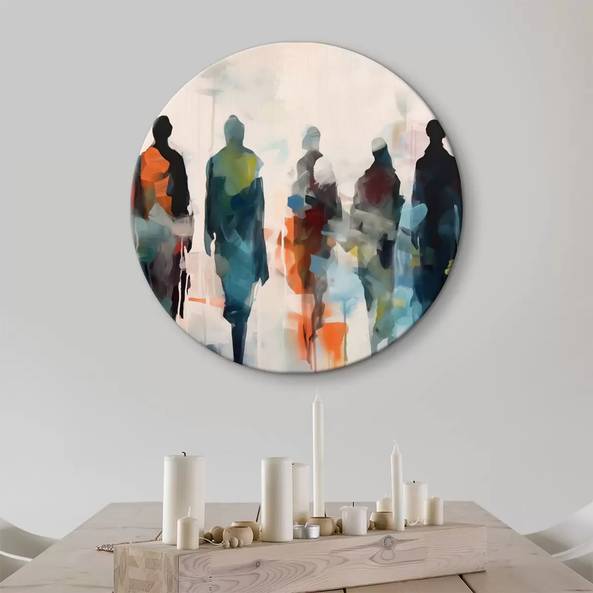 Quadri rotondi Silhouette di un gruppo di persone astratte, imitazione delle pennellate r40752
