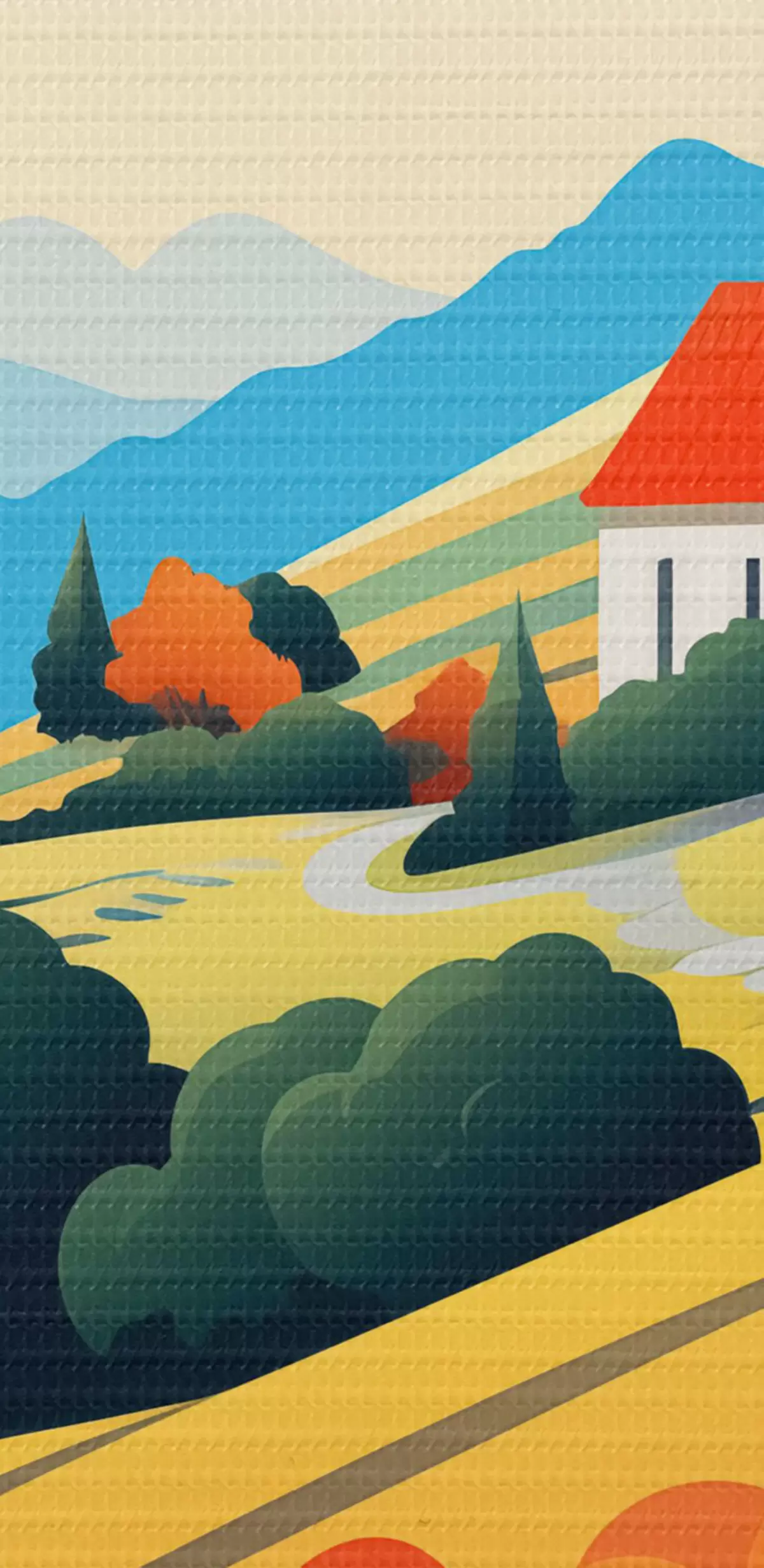 Immagine Luminoso paesaggio rurale con campi, papaveri e case Nr r40756